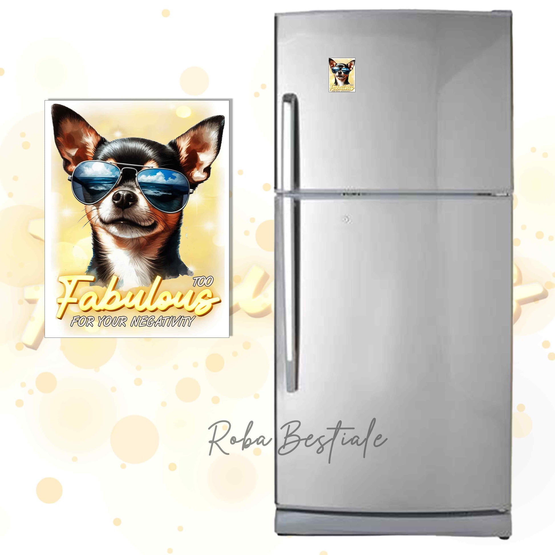 Calamita TOO FABULOUS - CHIHUAHUA a Pelo Corto Black Tricolor - in MDF - 7x5 cm