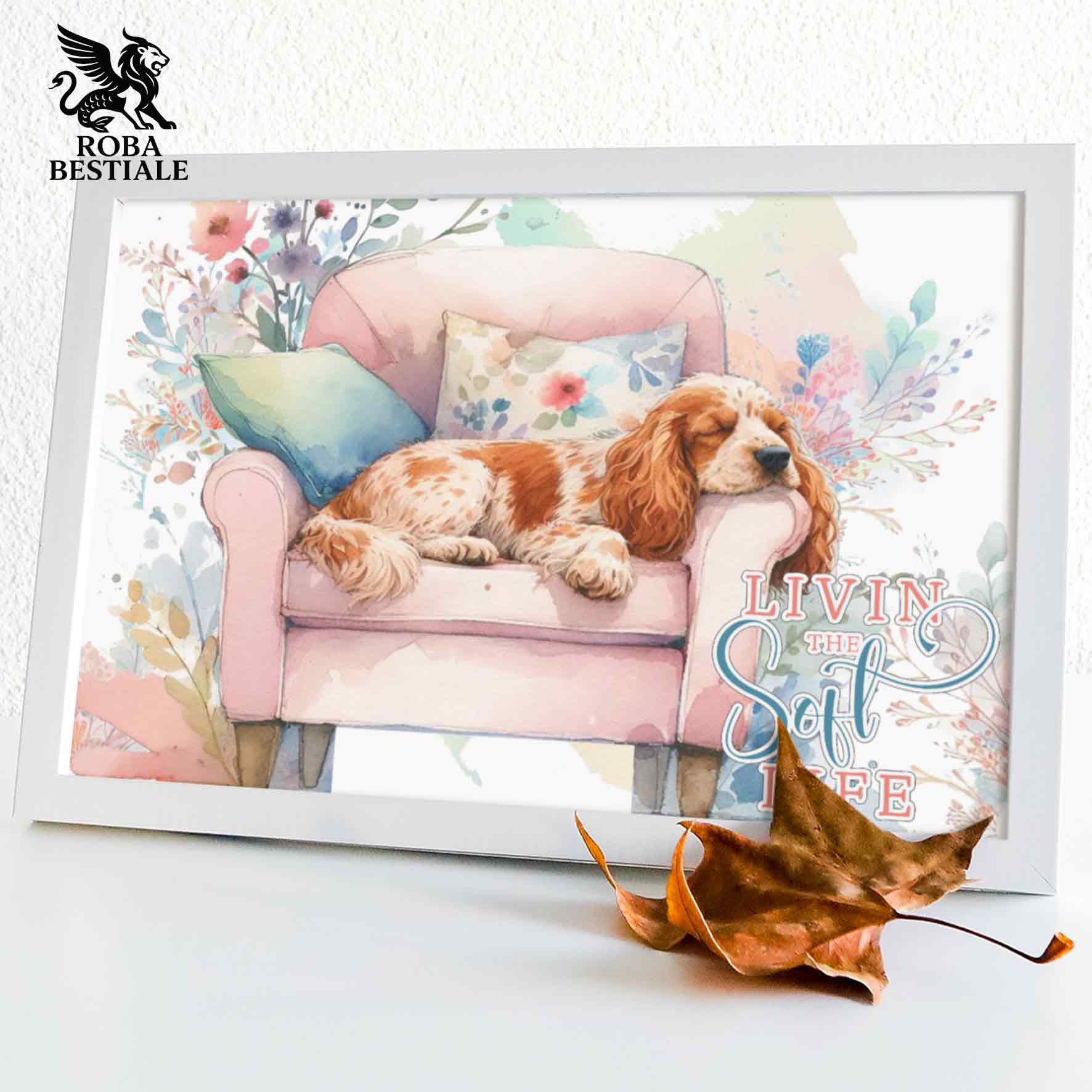 Quadretto SOFT LIFE - COCKER SPANIEL INGLESE Arancio Roano - Con cornice in legno, formato A4