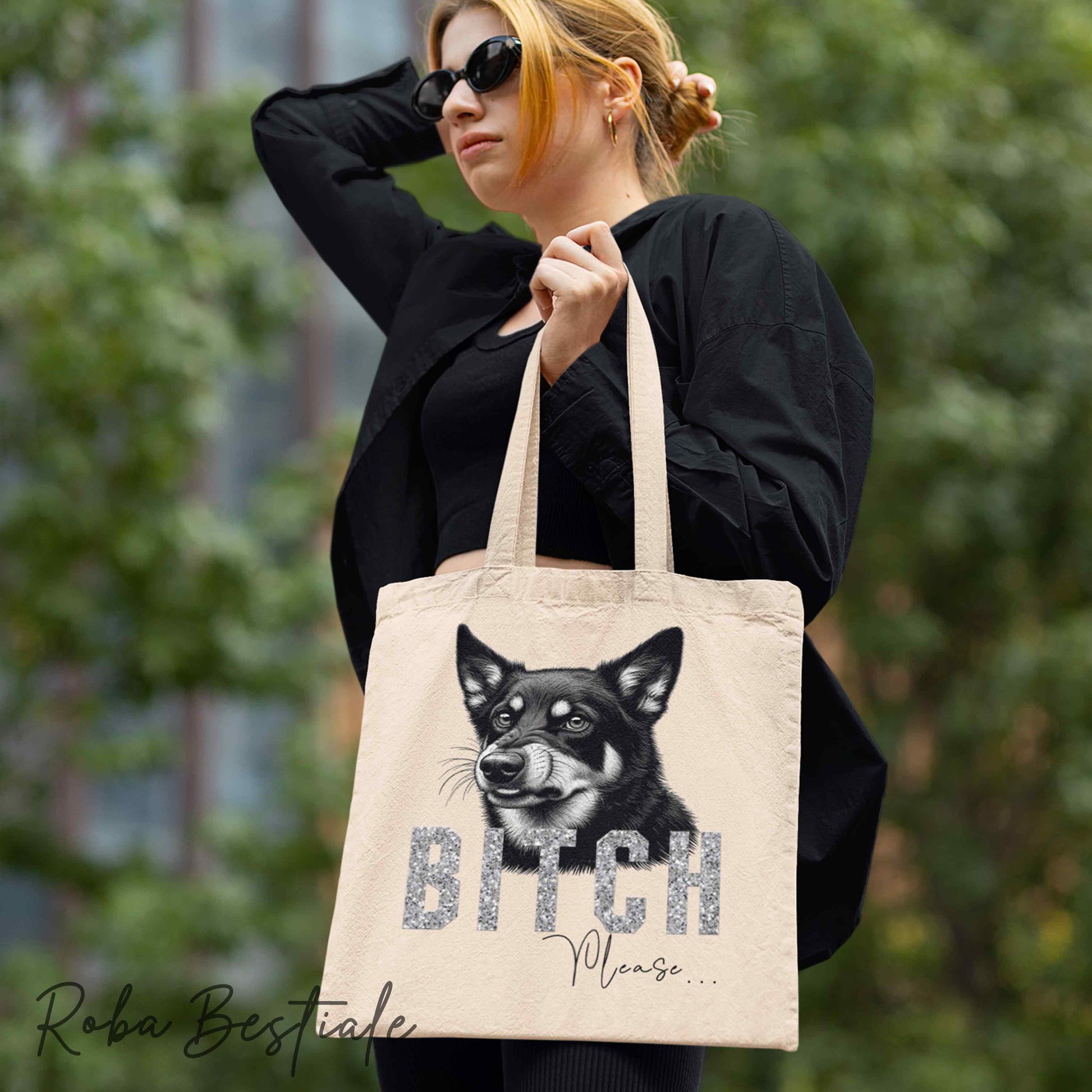 Shopper BI**H, PLEASE - AUSTRALIAN KELPIE - dettagli GLITTER - Diversi colori disponibili, 100% Cotone