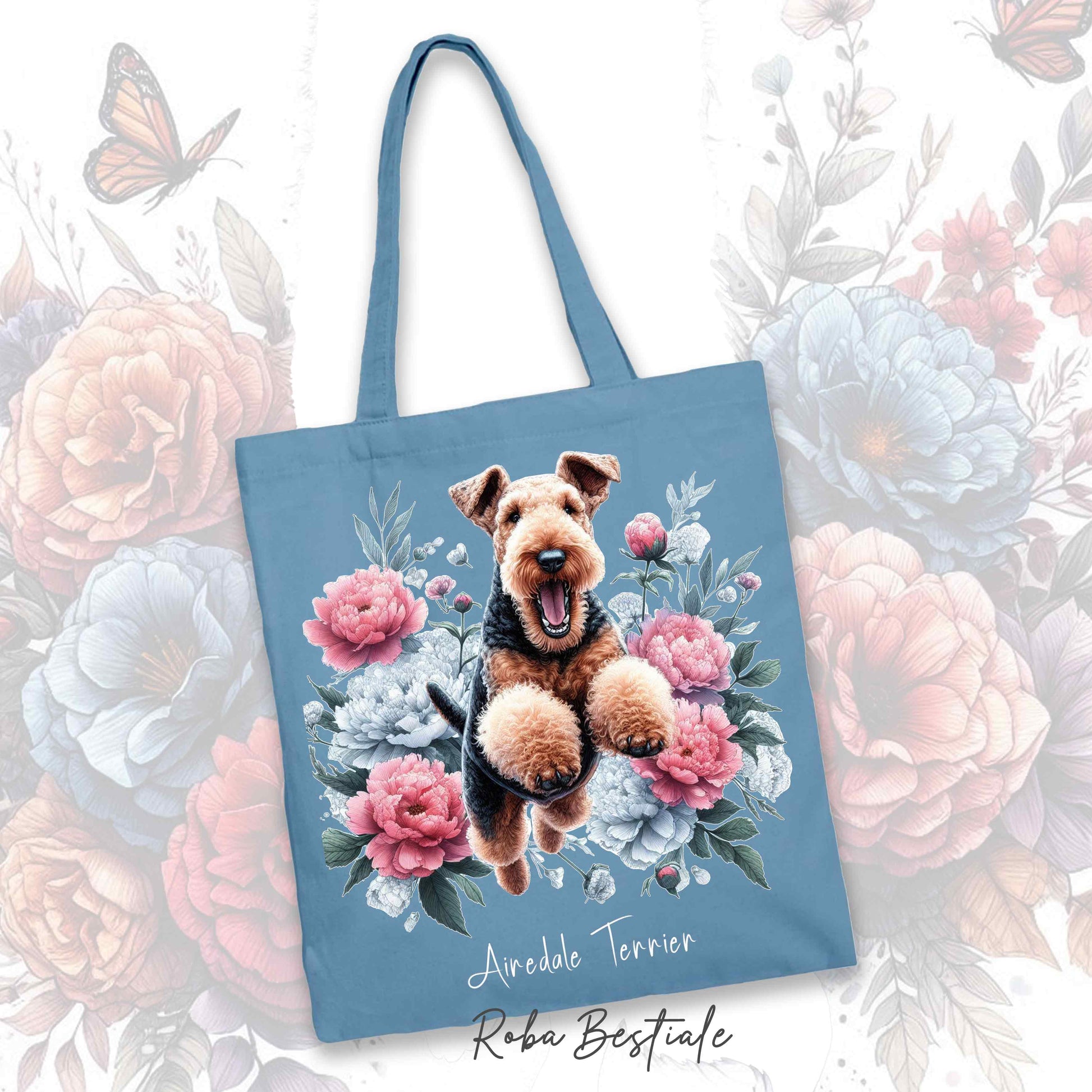 Shopper PEONY - AIREDALE TERRIER - Diversi colori disponibili - 100% Cotone