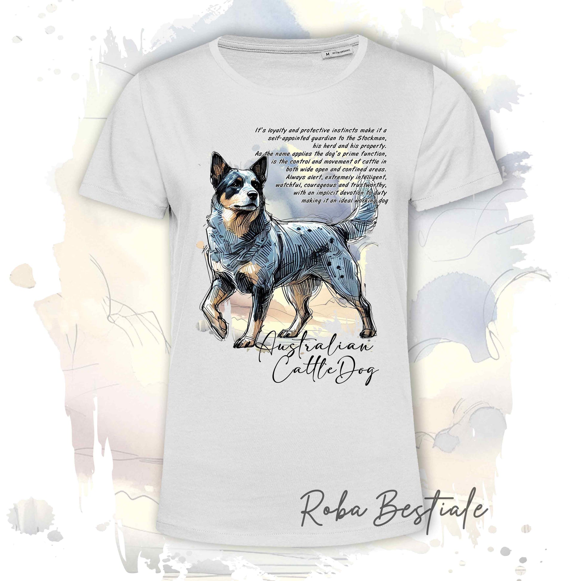 T-Shirt BEHAVIOR - AUSTRALIAN CATTLE DOG Blue - Standard FCI - 100% Cotone, Bianca, Uomo o Donna - dalla XS alla 5XL