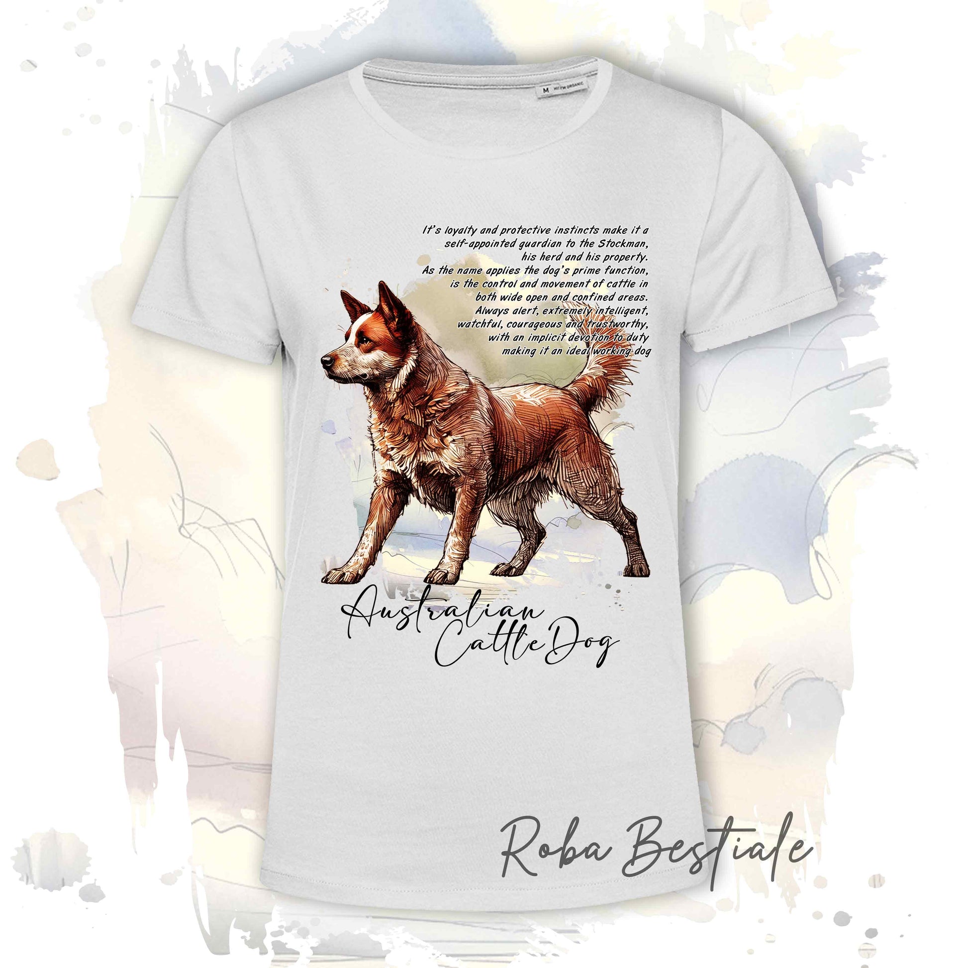 T-Shirt BEHAVIOR - AUSTRALIAN CATTLE DOG Red - Standard FCI - 100% Cotone, Bianca, Uomo o Donna - dalla XS alla 5XL