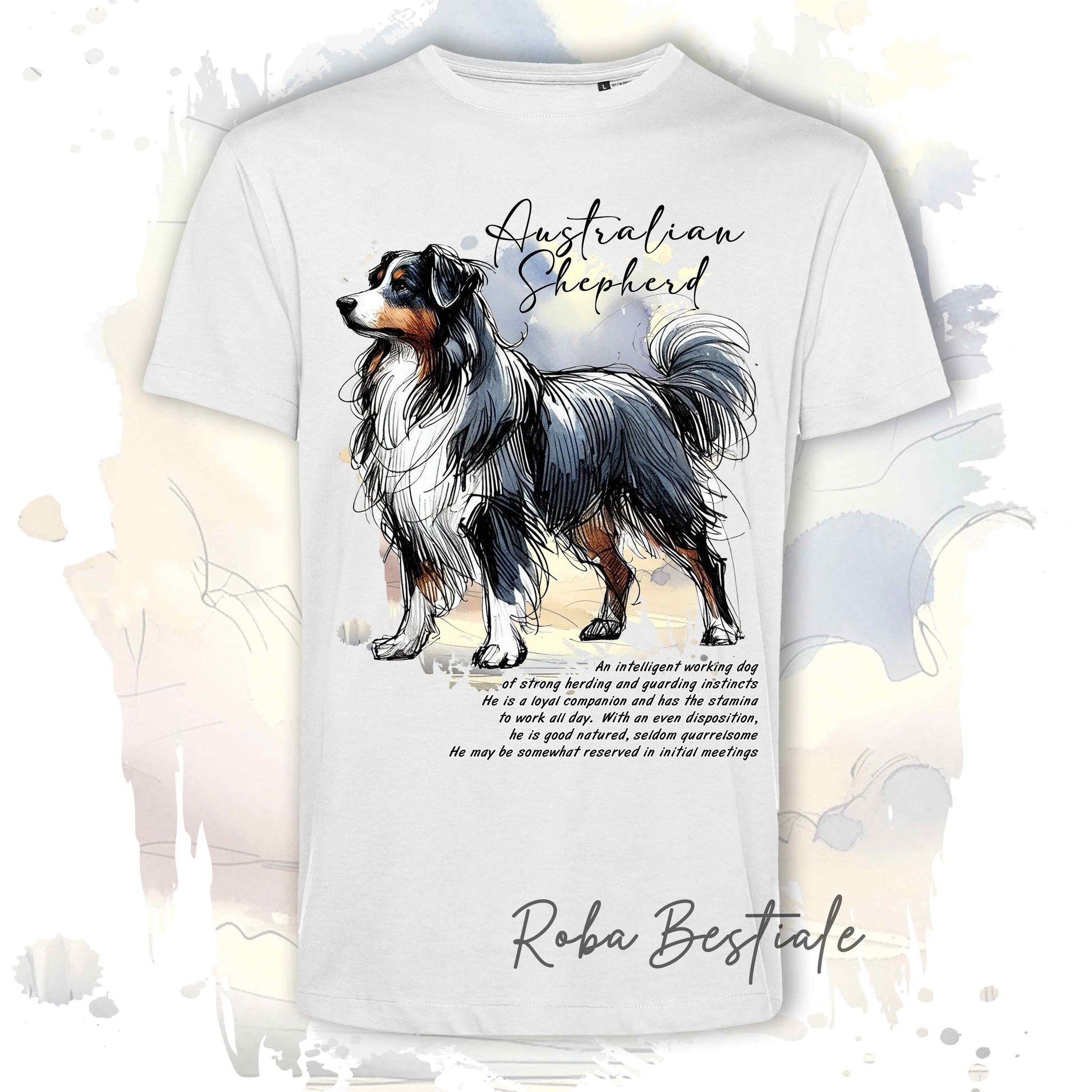 T-Shirt BEHAVIOR - AUSTRALIAN SHEPHERD Black Tricolor - Standard FCI - 100% Cotone, Bianca, Uomo o Donna - dalla XS alla 5XL