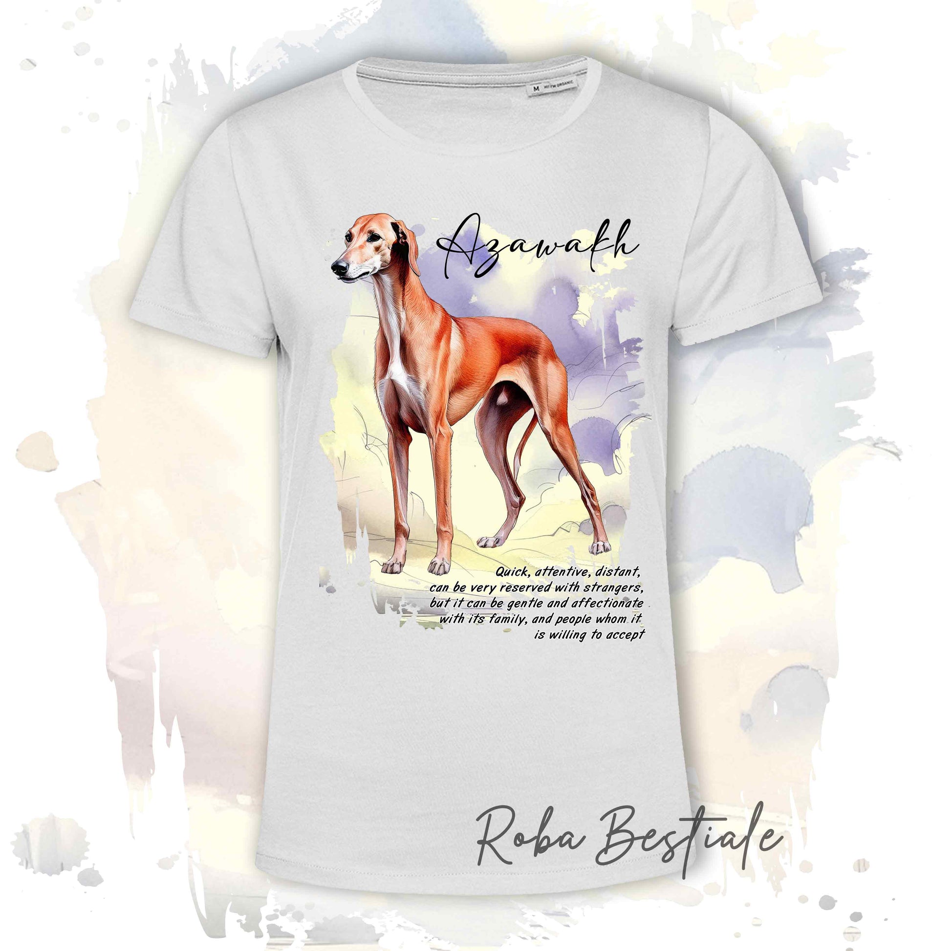 T-Shirt BEHAVIOR - AZAWAKH - Standard FCI - 100% Cotone, Bianca, Uomo o Donna - dalla XS alla 5XL
