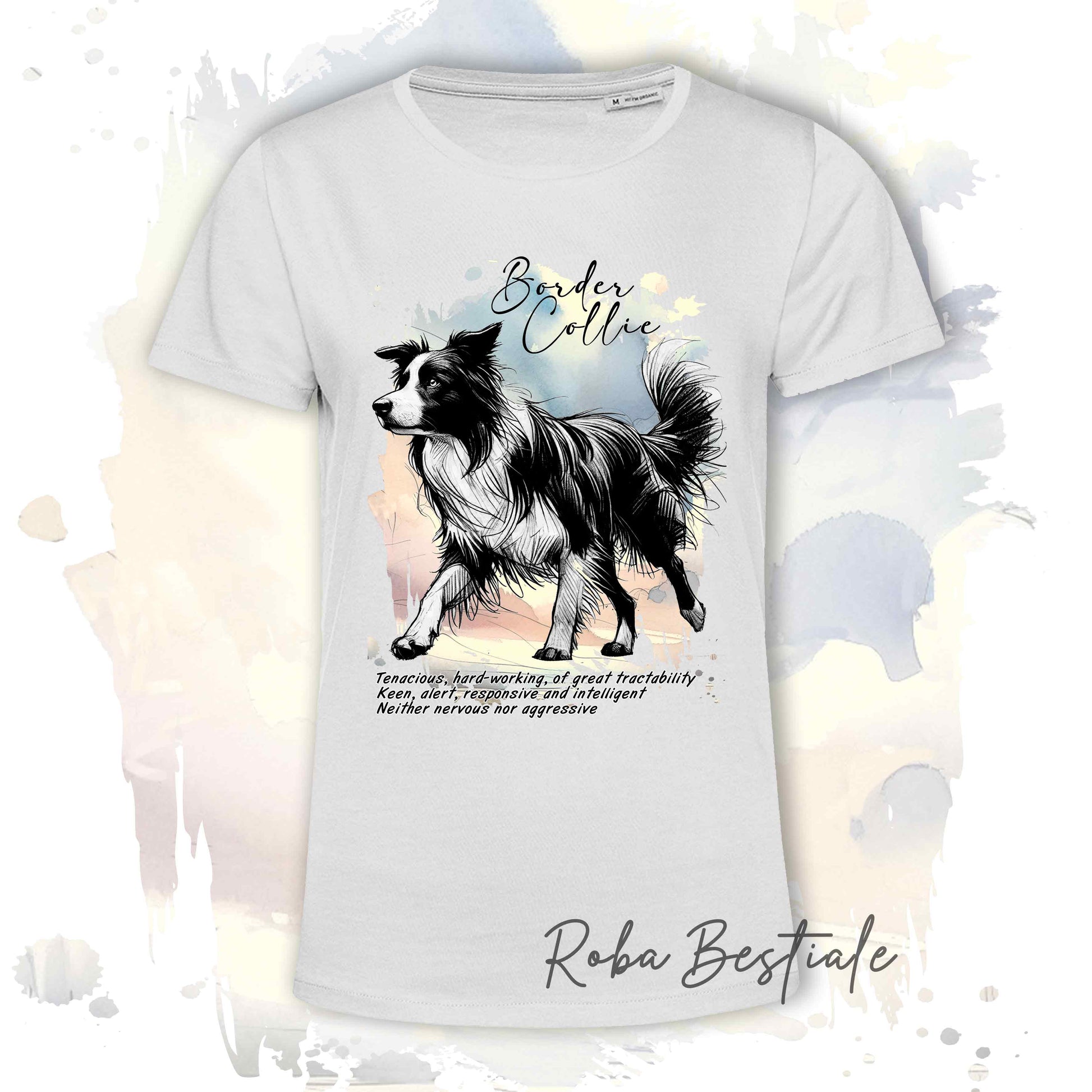 T-Shirt BEHAVIOR - BORDER COLLIE Bianco e Nero - Standard FCI - 100% Cotone, Bianca, Uomo o Donna - dalla XS alla 5XL