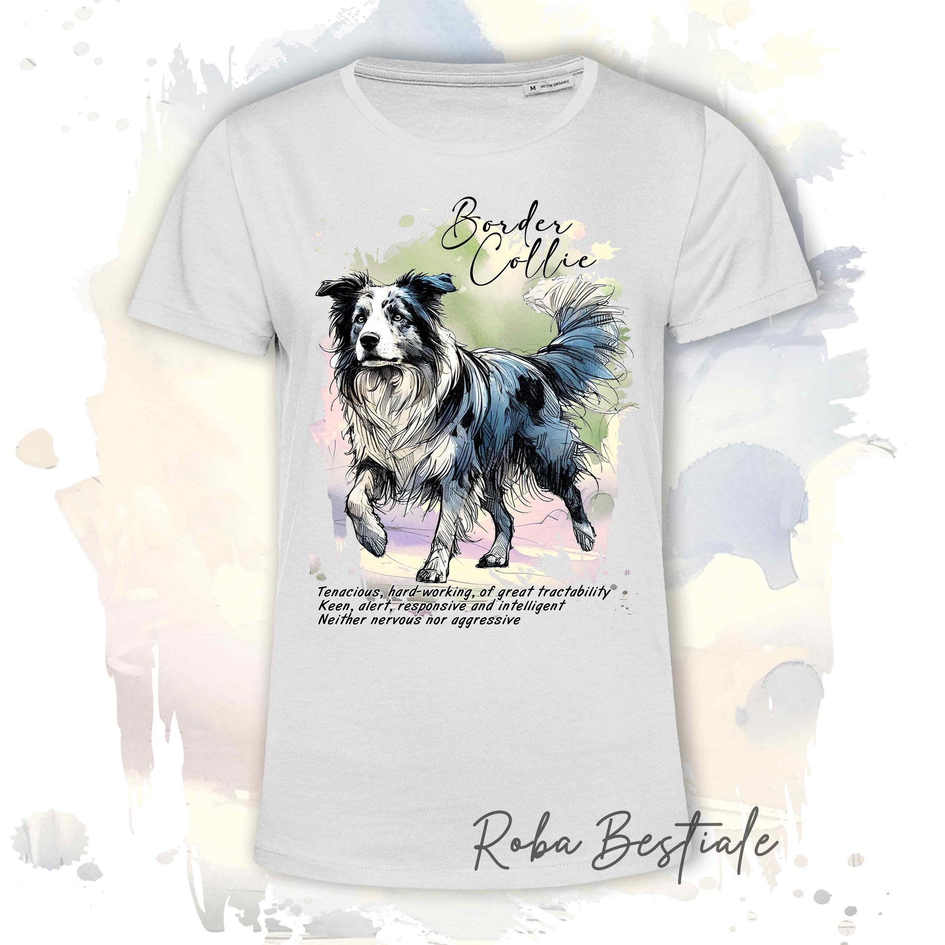 T-Shirt BEHAVIOR - BORDER COLLIE Blue Merle - Standard FCI - 100% Cotone, Bianca, Uomo o Donna - dalla XS alla 5XL