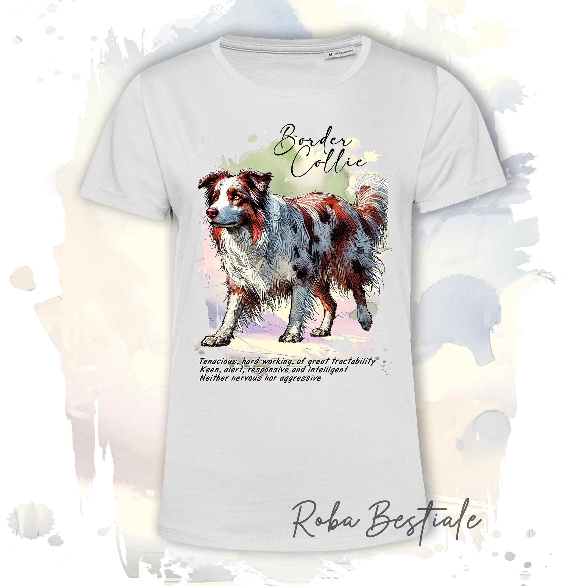 T-Shirt BEHAVIOR - BORDER COLLIE Red Merle - Standard FCI - 100% Cotone, Bianca, Uomo o Donna - dalla XS alla 5XL