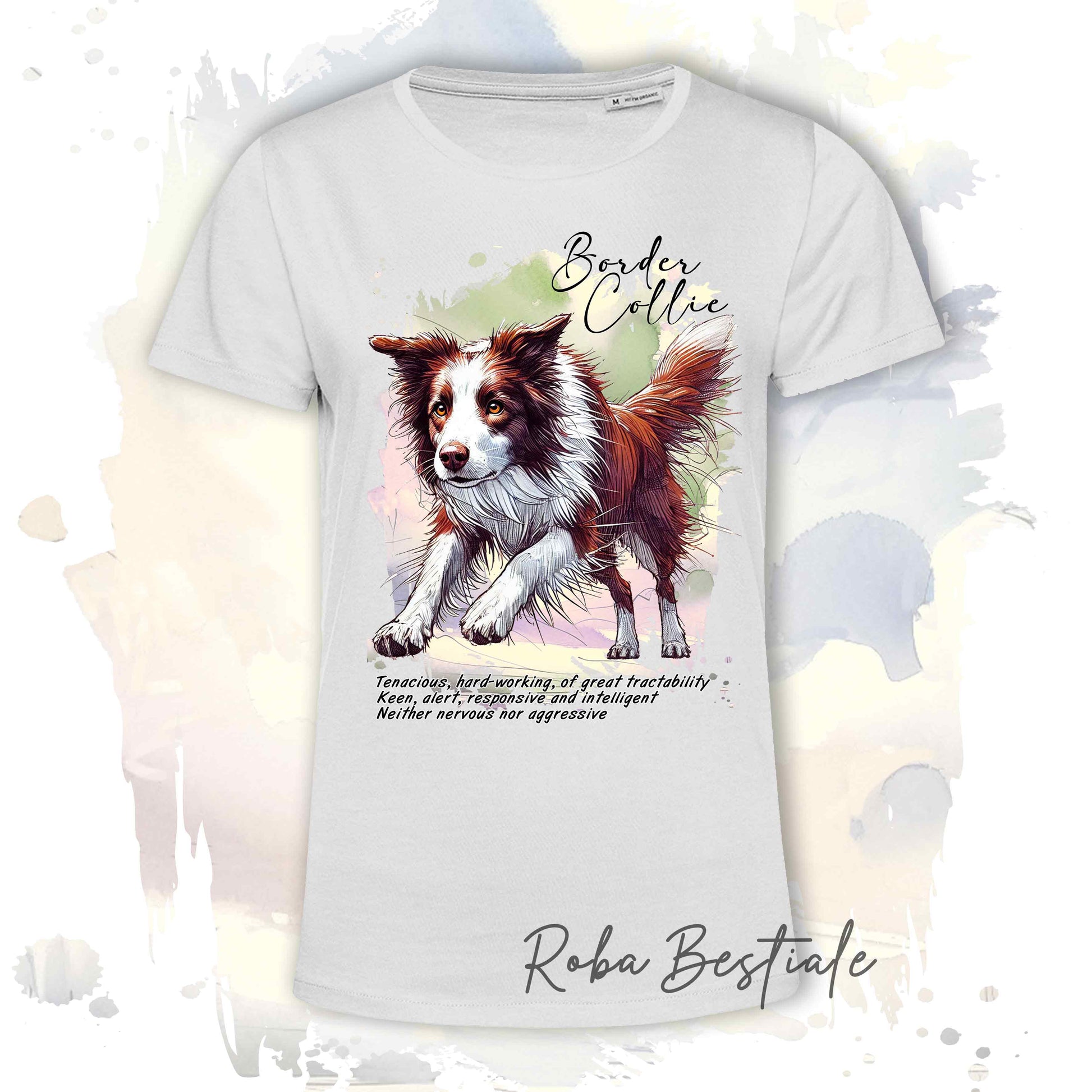 T-Shirt BEHAVIOR - BORDER COLLIE Rosso e Bianco - Standard FCI - 100% Cotone, Bianca, Uomo o Donna - dalla XS alla 5XL