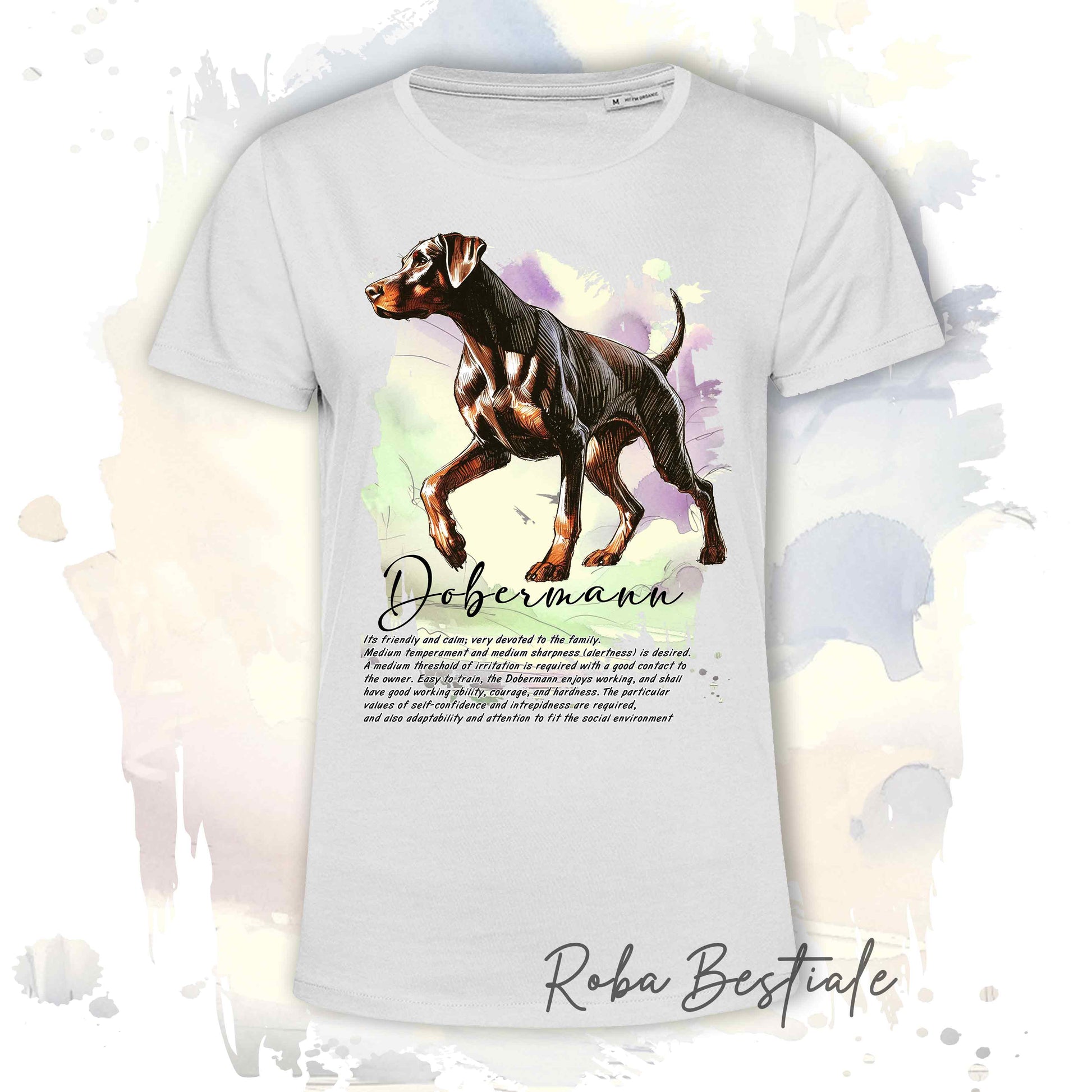 T-Shirt BEHAVIOR - DOBERMANN Marrone Focato - Standard FCI - 100% Cotone, Bianca, Uomo o Donna - dalla XS alla 5XL