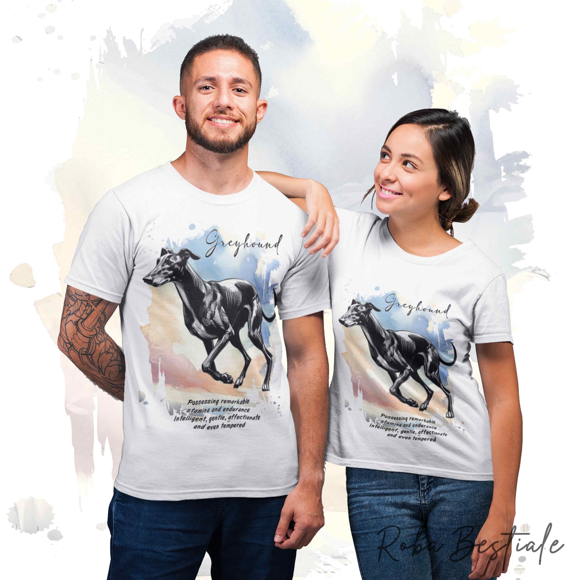T-Shirt BEHAVIOR - GREYHOUND Nero - Standard FCI - 100% Cotone, Bianca, Uomo o Donna - dalla XS alla 5XL