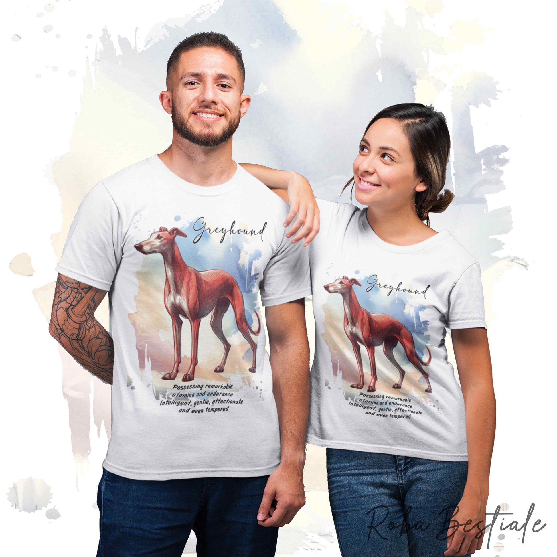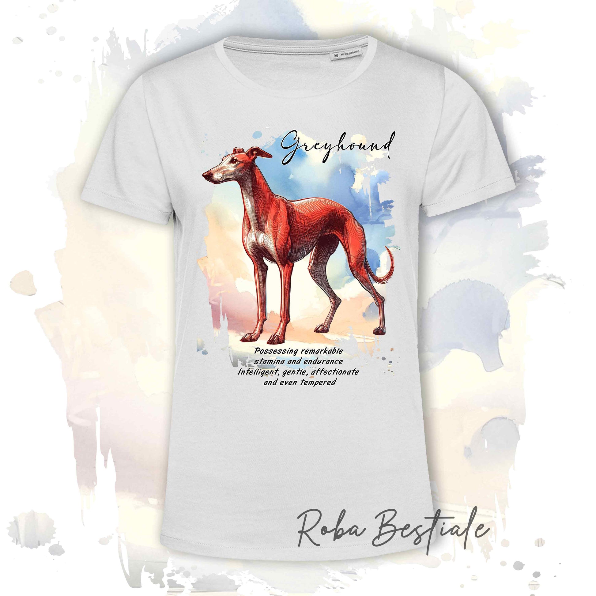 T-Shirt BEHAVIOR - GREYHOUND Rosso - Standard FCI - 100% Cotone, Bianca, Uomo o Donna - dalla XS alla 5XL