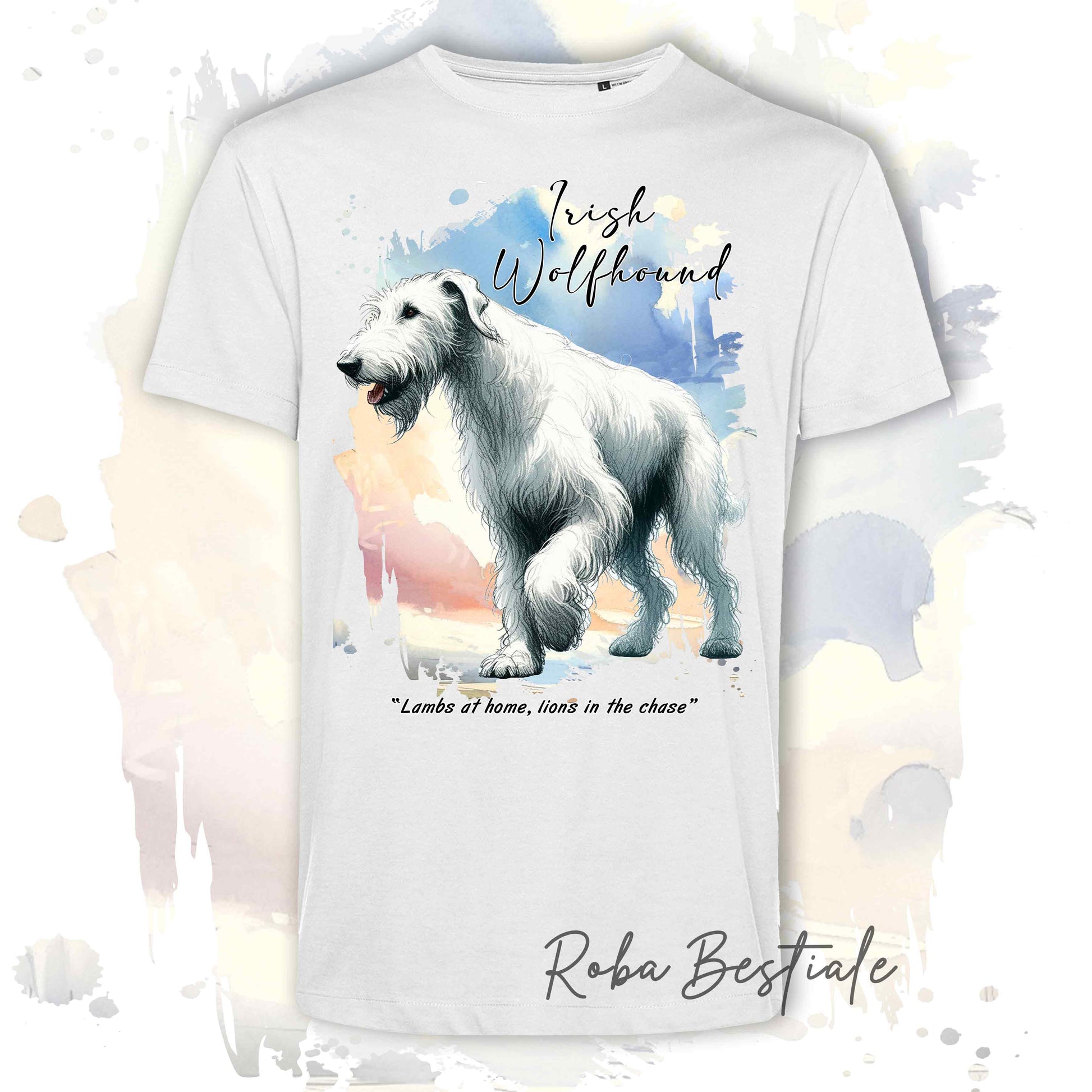 T-Shirt BEHAVIOR - IRISH WOLFHOUND Bianco - Standard FCI - 100% Cotone, Bianca, Uomo o Donna - dalla XS alla 5XL