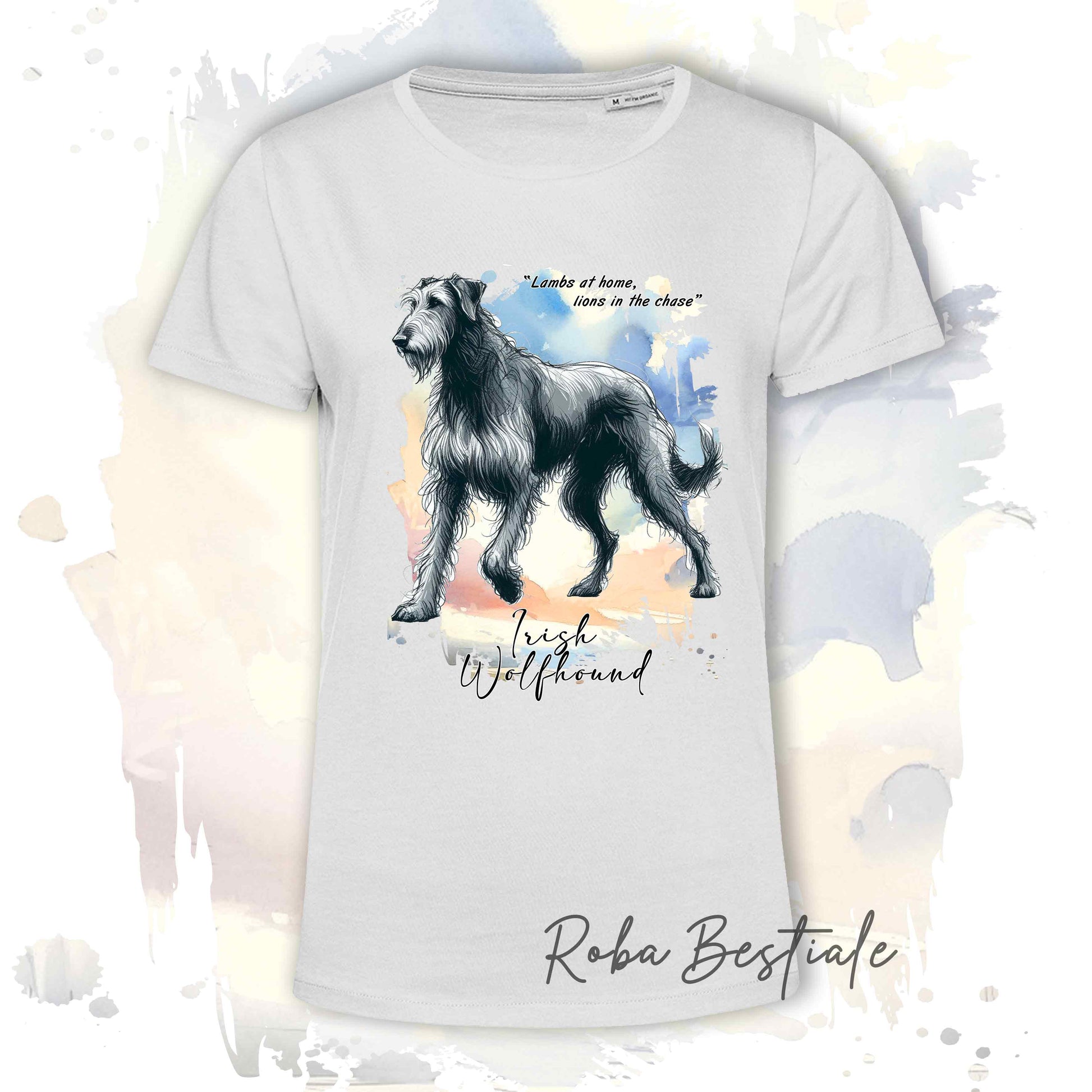 T-Shirt BEHAVIOR - IRISH WOLFHOUND Grigio - Standard FCI - 100% Cotone, Bianca, Uomo o Donna - dalla XS alla 5XL