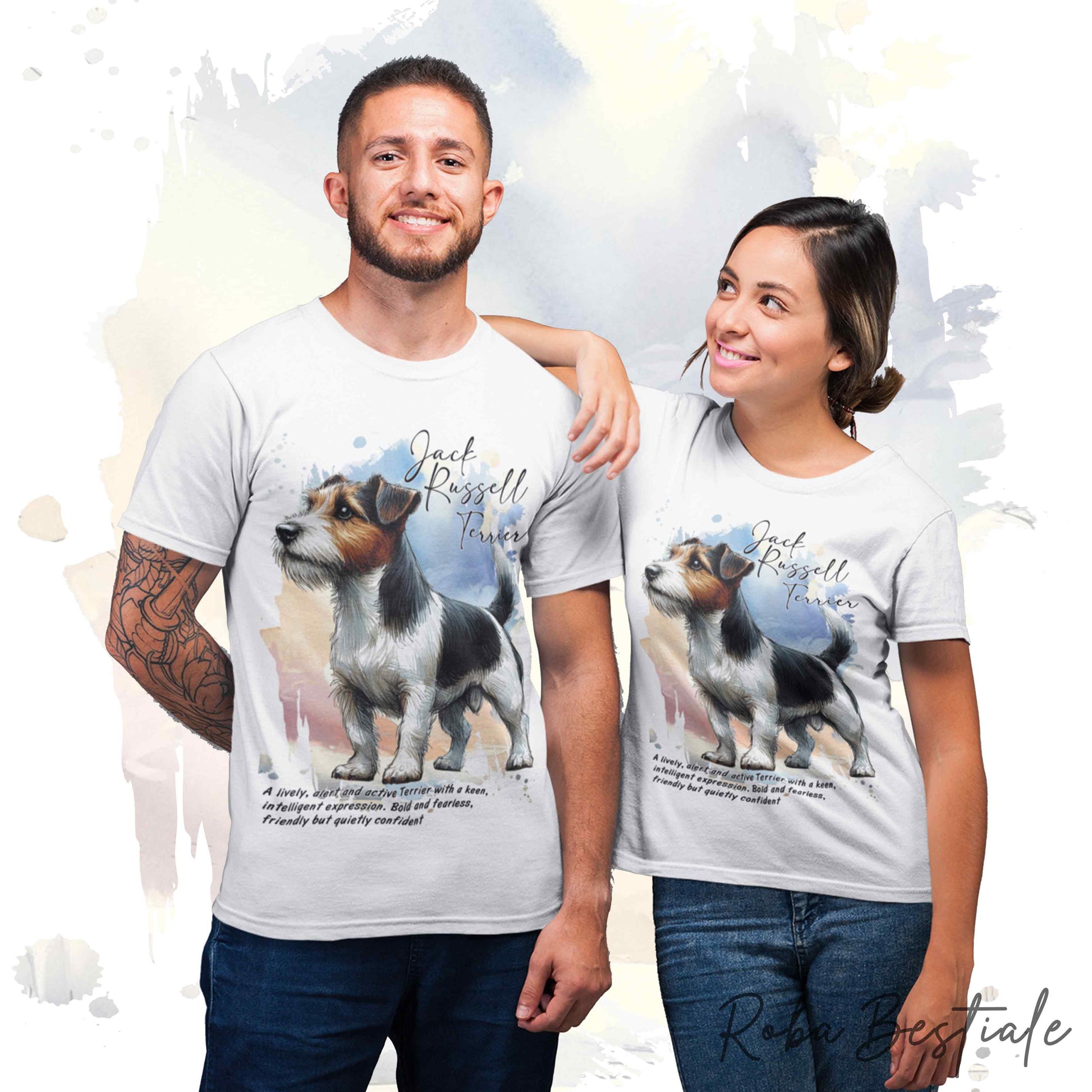 T-Shirt BEHAVIOR - JACK RUSSELL TERRIER a Pelo RUVIDO Tricolor - Standard FCI - 100% Cotone, Bianca, Uomo o Donna - dalla XS alla 5XL