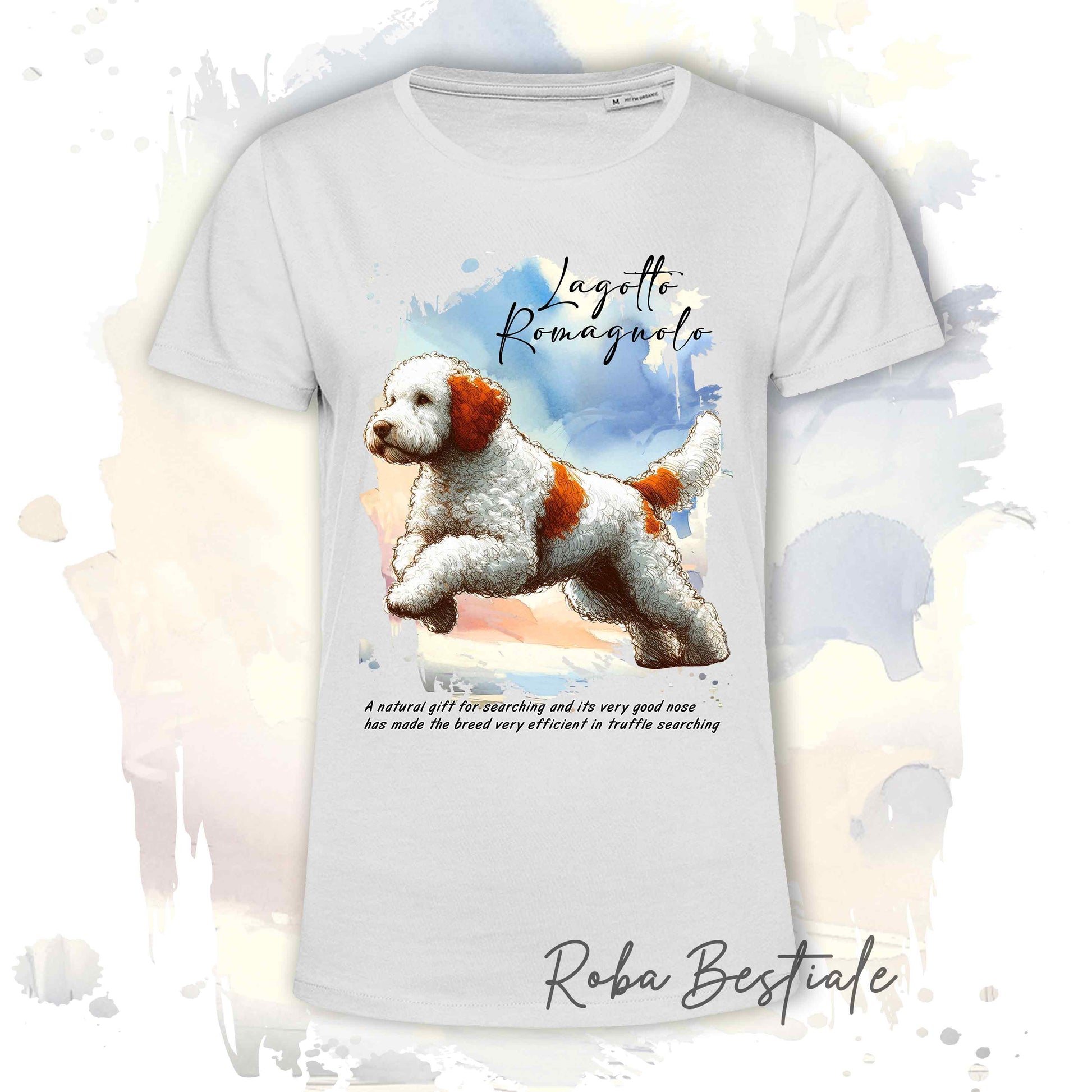 T-Shirt BEHAVIOR - LAGOTTO ROMAGNOLO Bianco e Arancio - Standard FCI - 100% Cotone, Bianca, Uomo o Donna - dalla XS alla 5XL