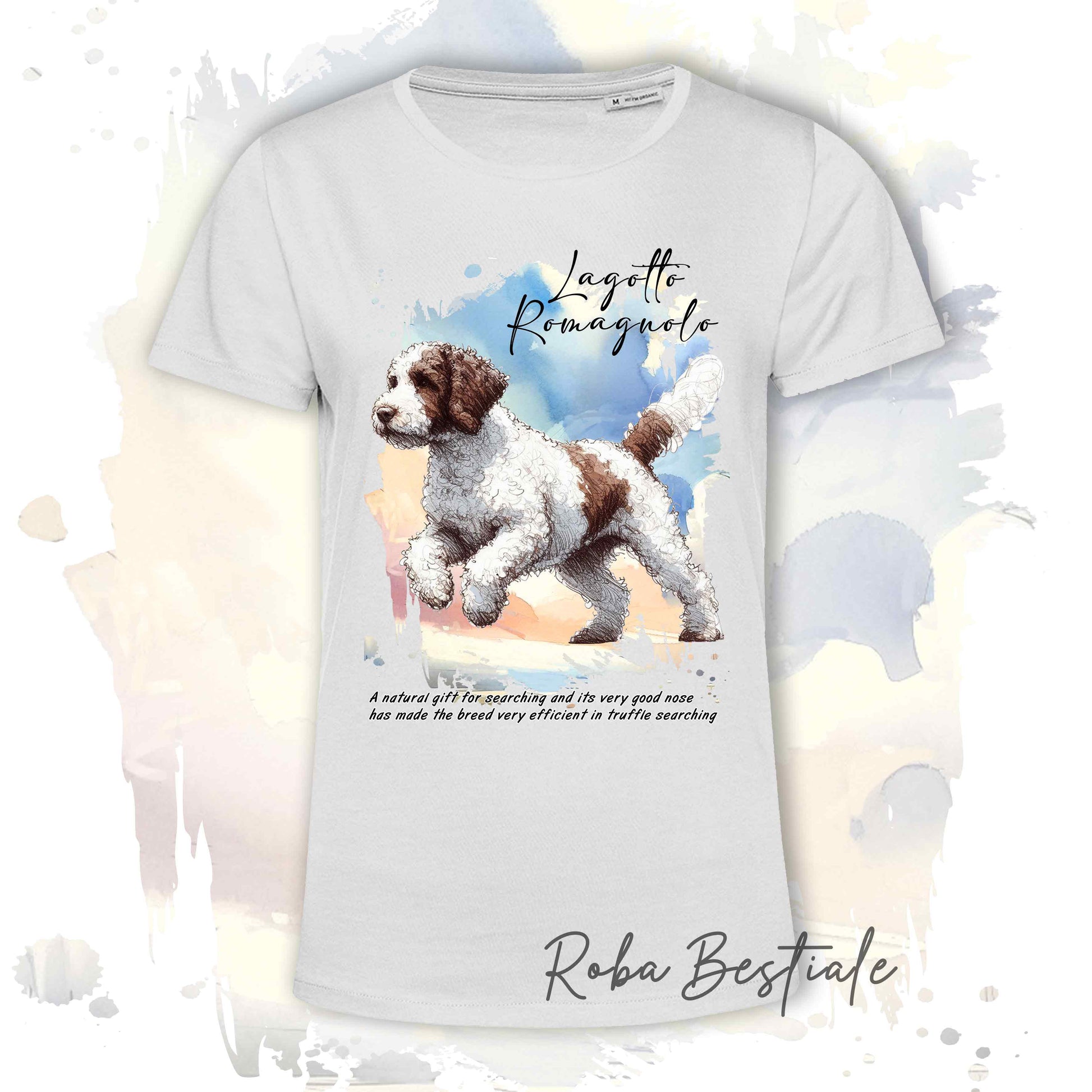 T-Shirt BEHAVIOR - LAGOTTO ROMAGNOLO Bianco e Marrone - Standard FCI - 100% Cotone, Bianca, Uomo o Donna - dalla XS alla 5XL