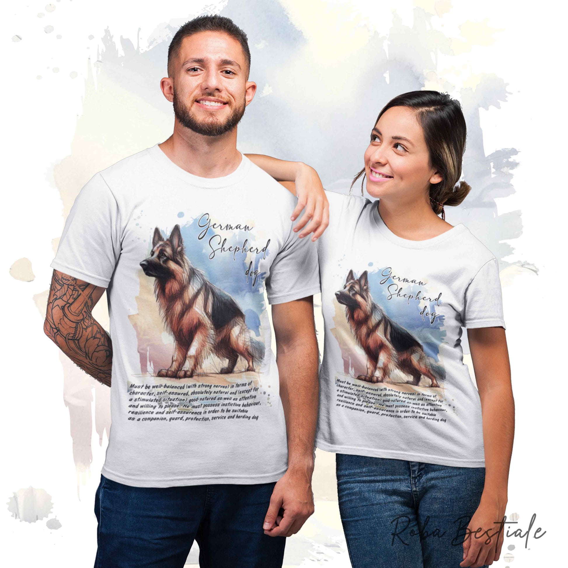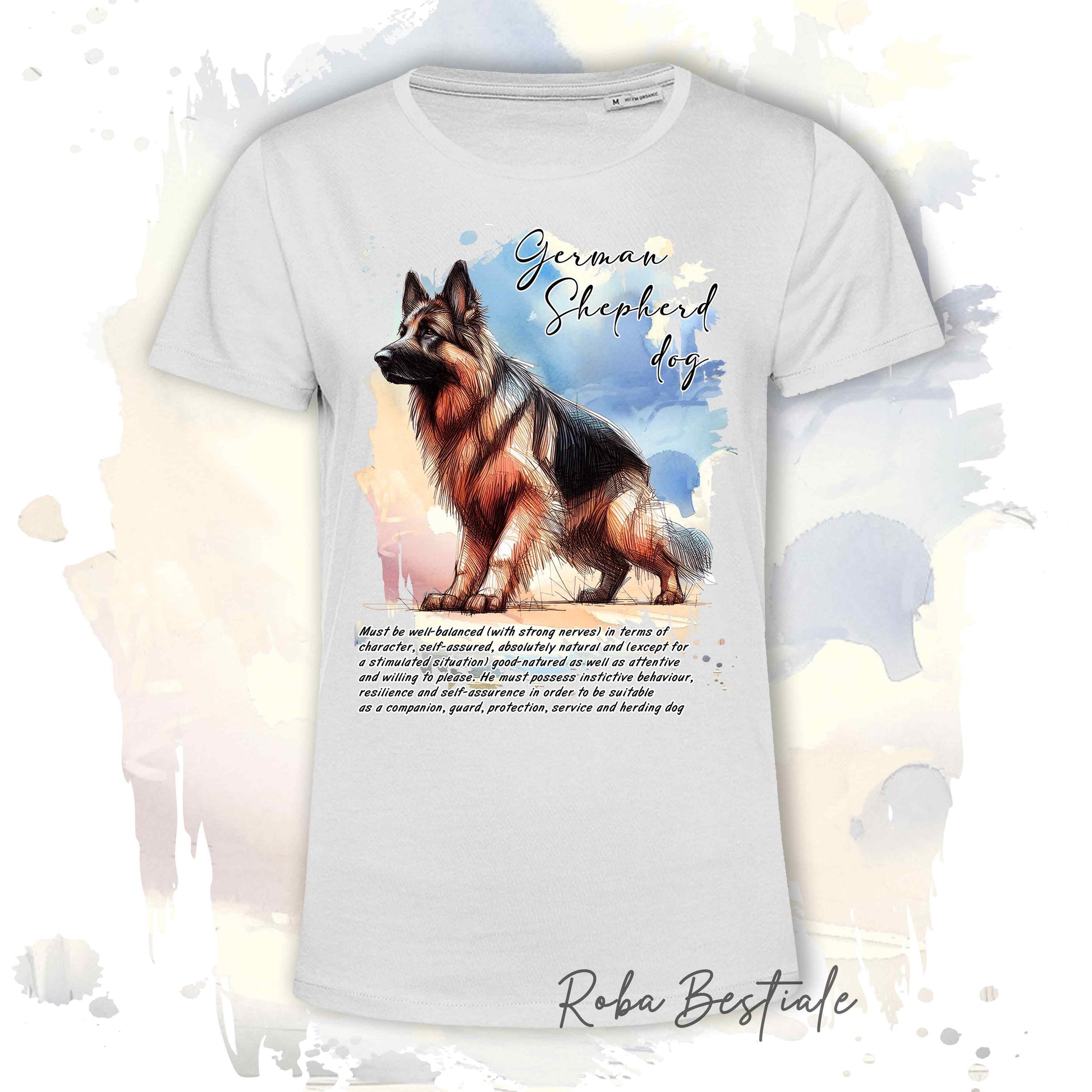 T-Shirt BEHAVIOR - PASTORE TEDESCO a Pelo Lungo - Standard FCI - 100% Cotone, Bianca, Uomo o Donna - dalla XS alla 5XL