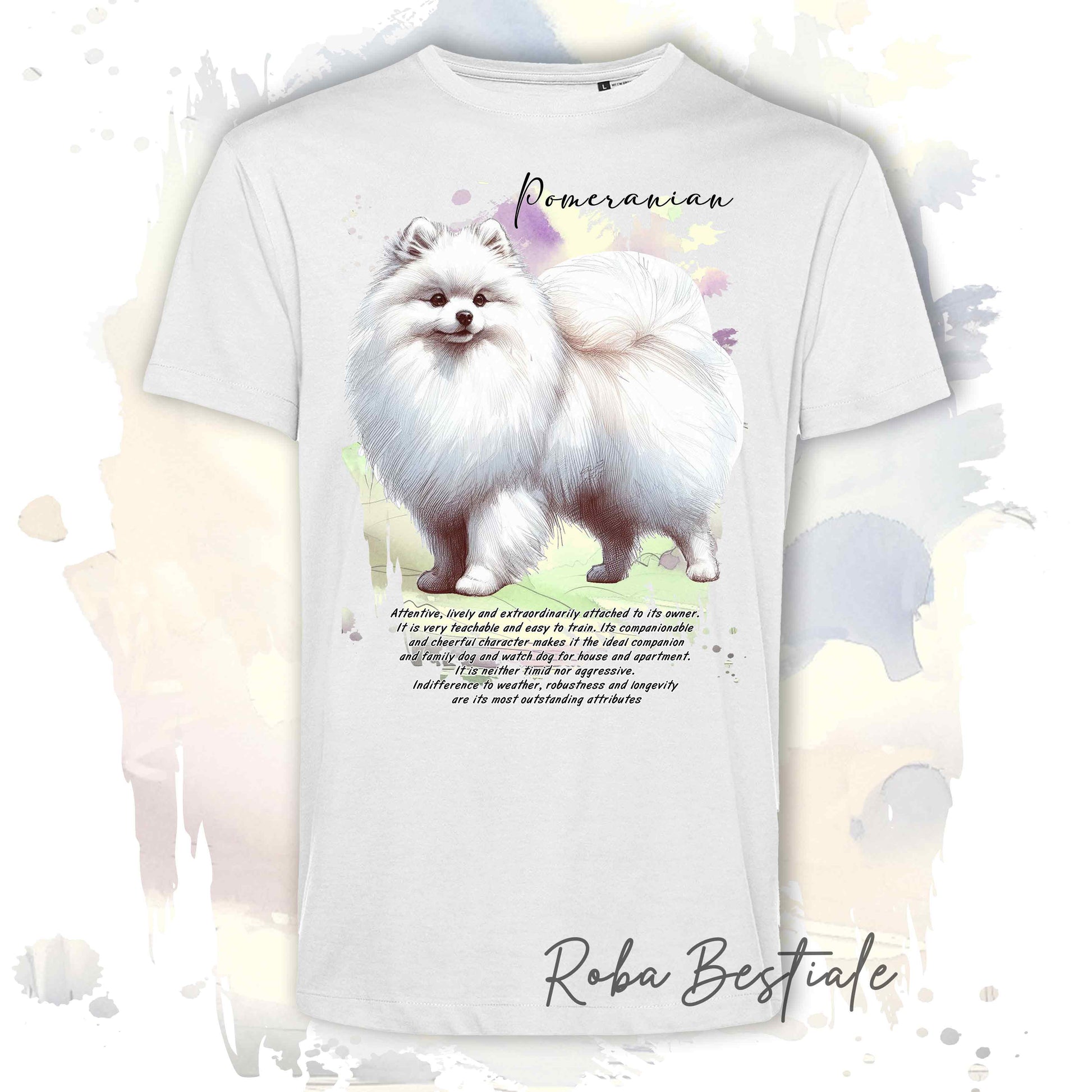 T-Shirt BEHAVIOR - POMERANIA - SPITZ TEDESCO TOY Bianco - Standard FCI - 100% Cotone, Bianca, Uomo o Donna - dalla XS alla 5XL