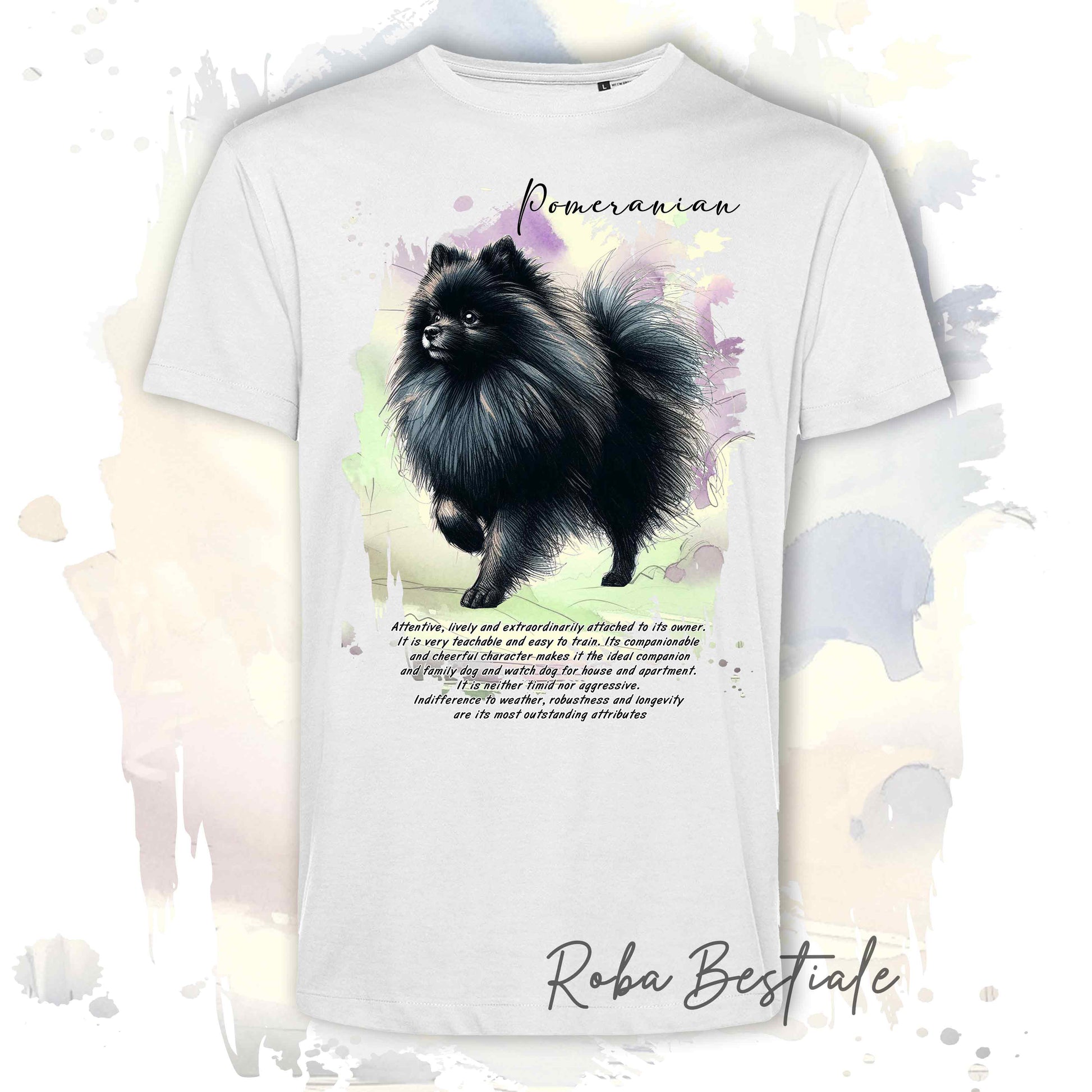 T-Shirt BEHAVIOR - POMERANIA - SPITZ TEDESCO TOY Nero - Standard FCI - 100% Cotone, Bianca, Uomo o Donna - dalla XS alla 5XL