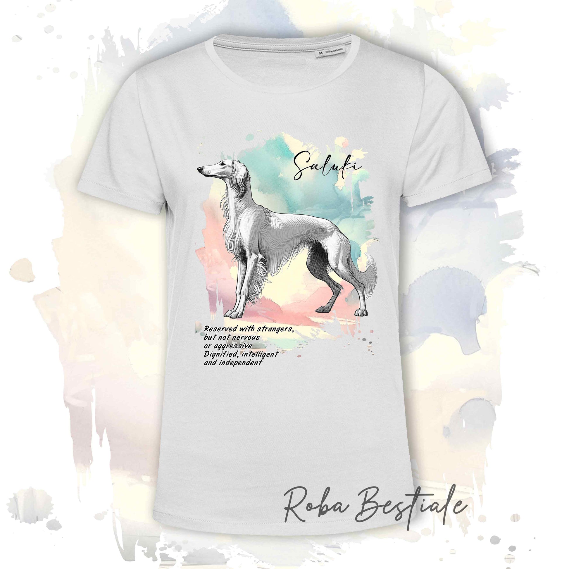 T-Shirt BEHAVIOR - SALUKI Bianco - Standard FCI - 100% Cotone, Bianca, Uomo o Donna - dalla XS alla 5XL