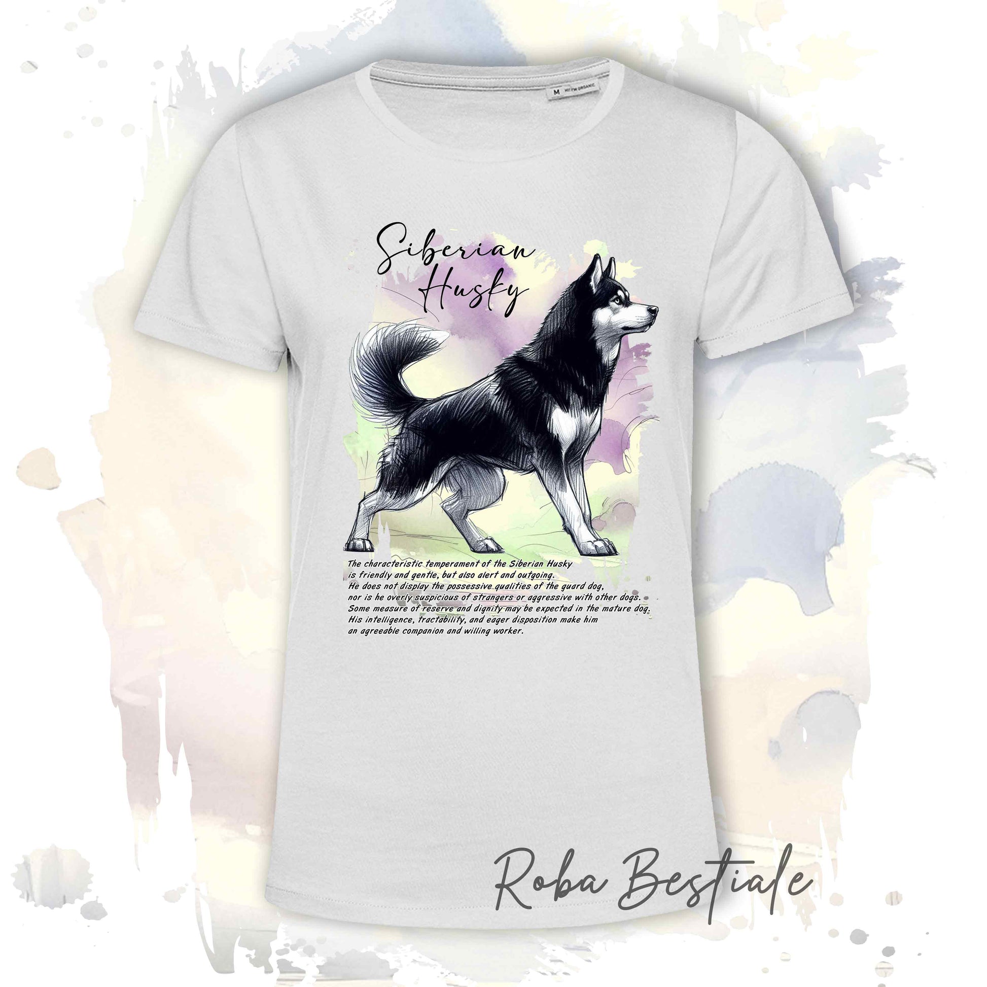 T-Shirt BEHAVIOR - SIBERIAN HUSKY Nero - Standard FCI - 100% Cotone, Bianca, Uomo o Donna - dalla XS alla 5XL