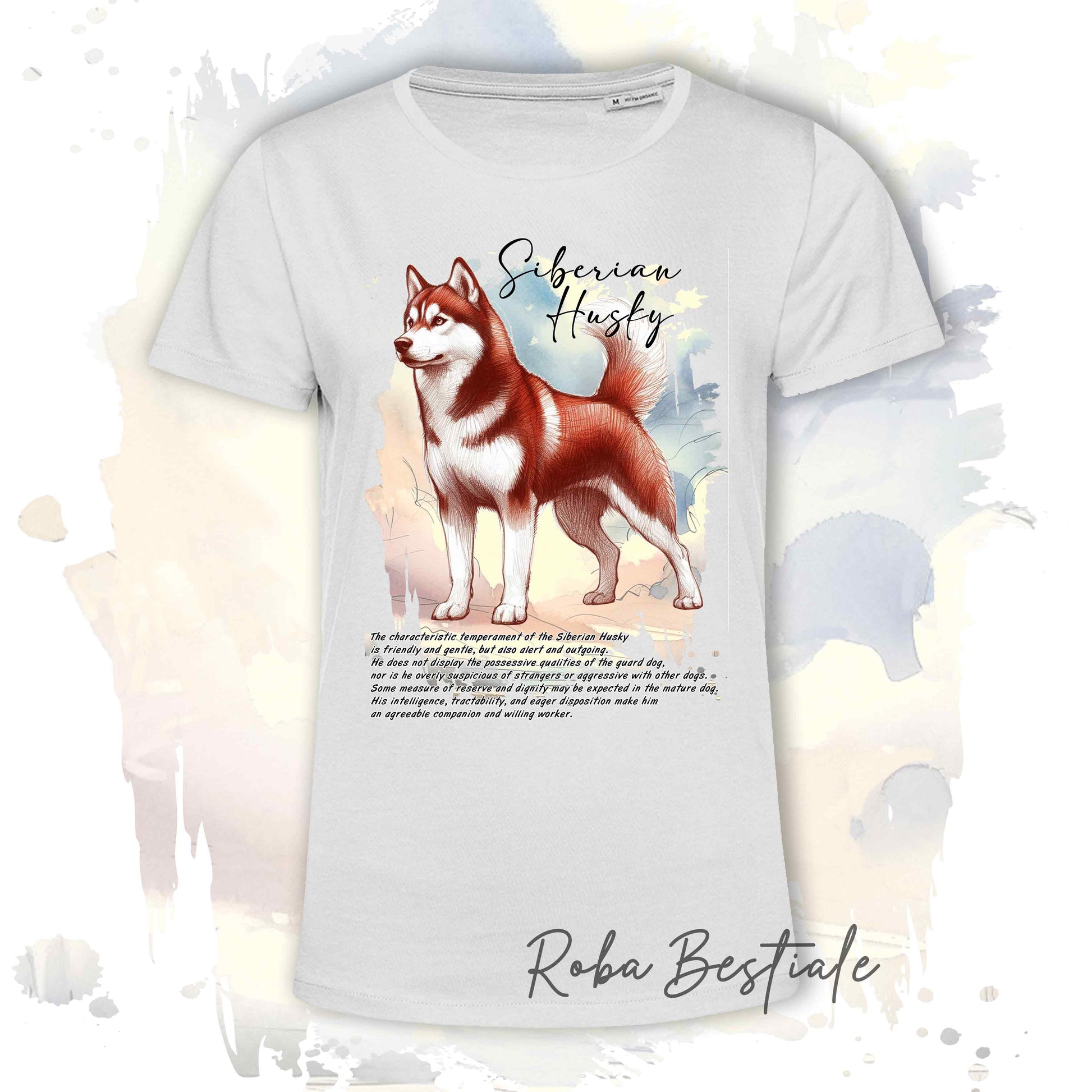 T-Shirt BEHAVIOR - SIBERIAN HUSKY Rosso - Standard FCI - 100% Cotone, Bianca, Uomo o Donna - dalla XS alla 5XL