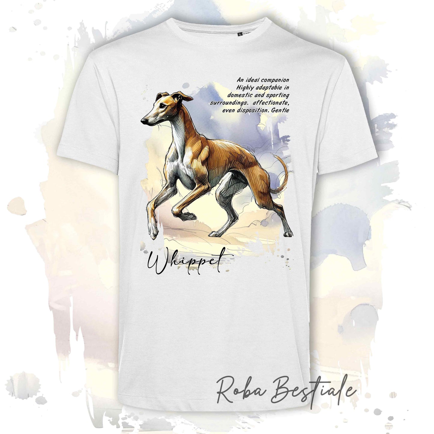 T-Shirt BEHAVIOR - WHIPPET Bianco Arancio - Standard FCI - 100% Cotone - dalla XS alla 5XL