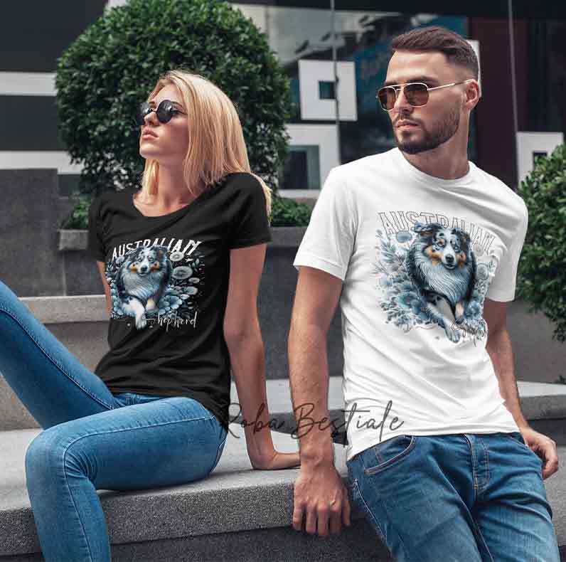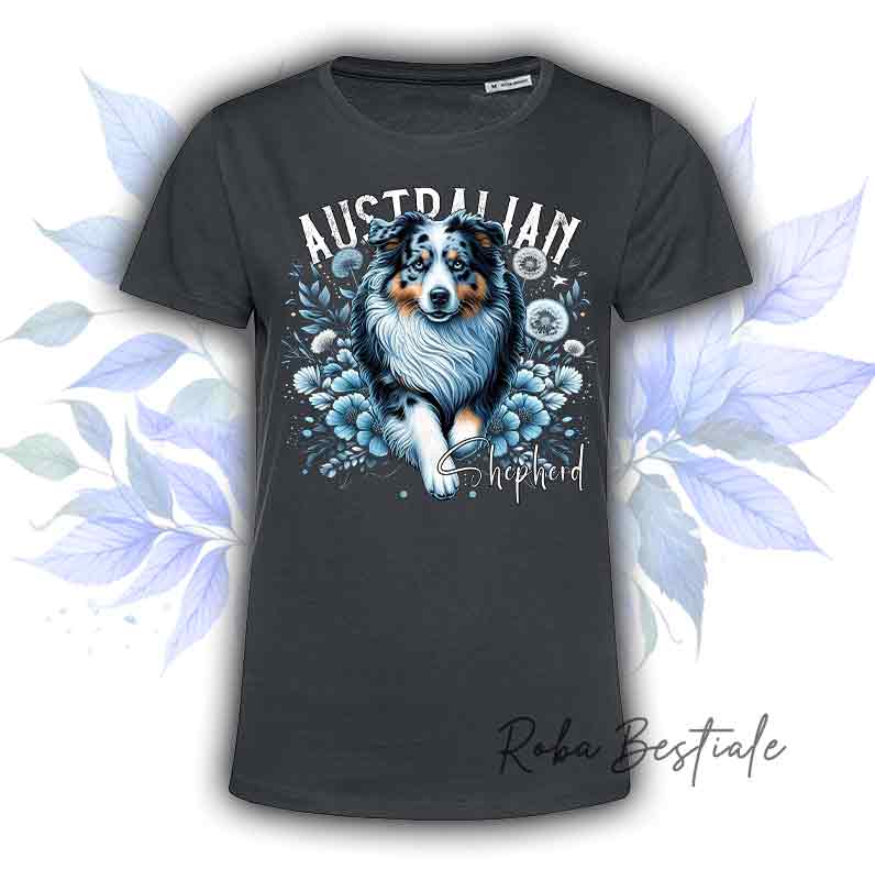 T-Shirt BLOSSOM BEAUTY - AUSTRALIAN SHEPHERD Blue Merle - Nera o Bianca - dalla XS alla 5XL