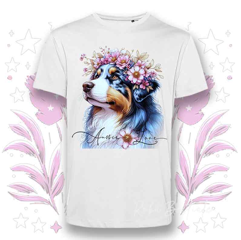 T-Shirt BLOSSOM BEAUTY - AUSTRALIAN SHEPHERD Blue Merle - Bianca, Uomo o Donna - dalla XS alla 5XL