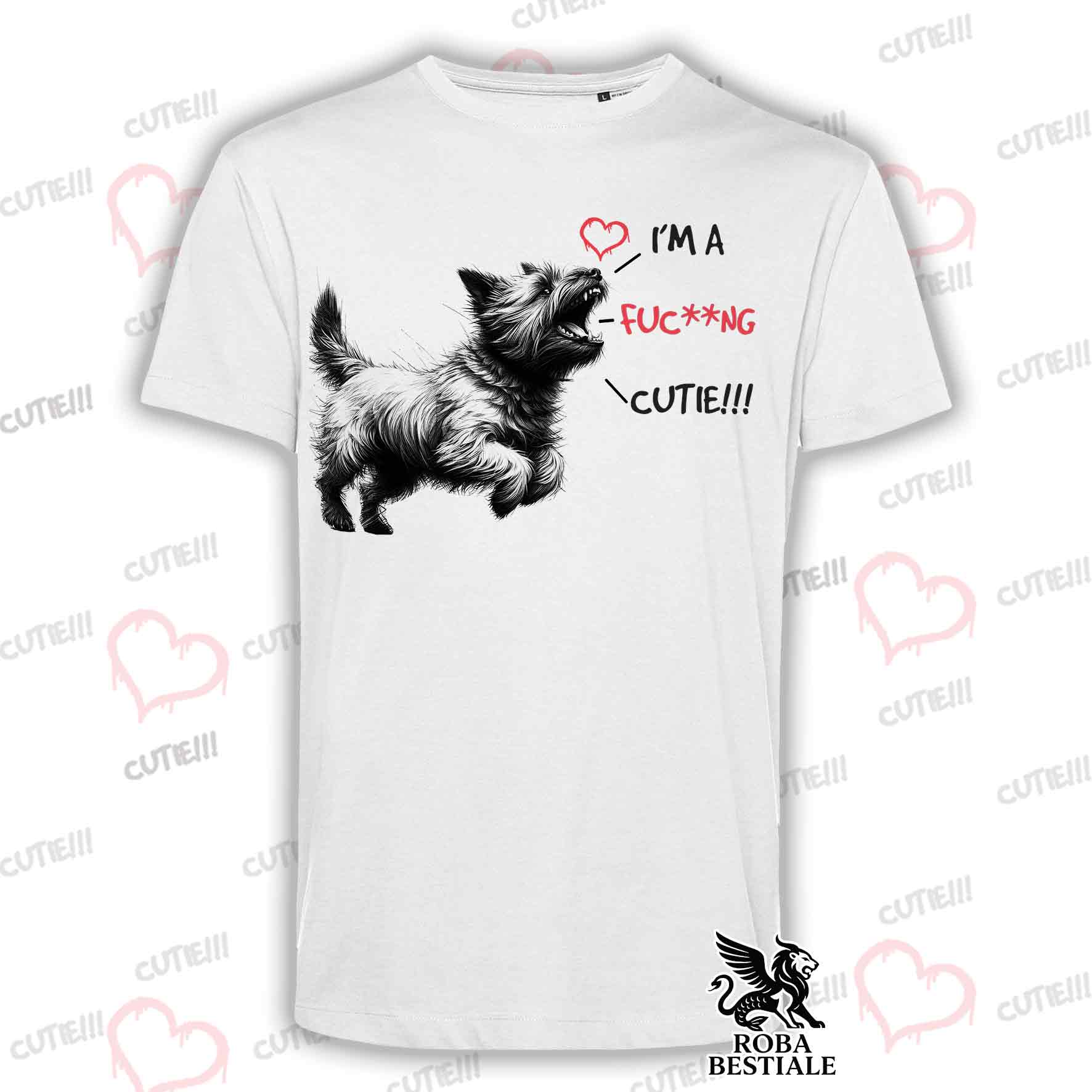 T-Shirt CUTIE - CAIRN TERRIER - Bianca o Beige, da Uomo o da Donna - dalla XS alla 5XL