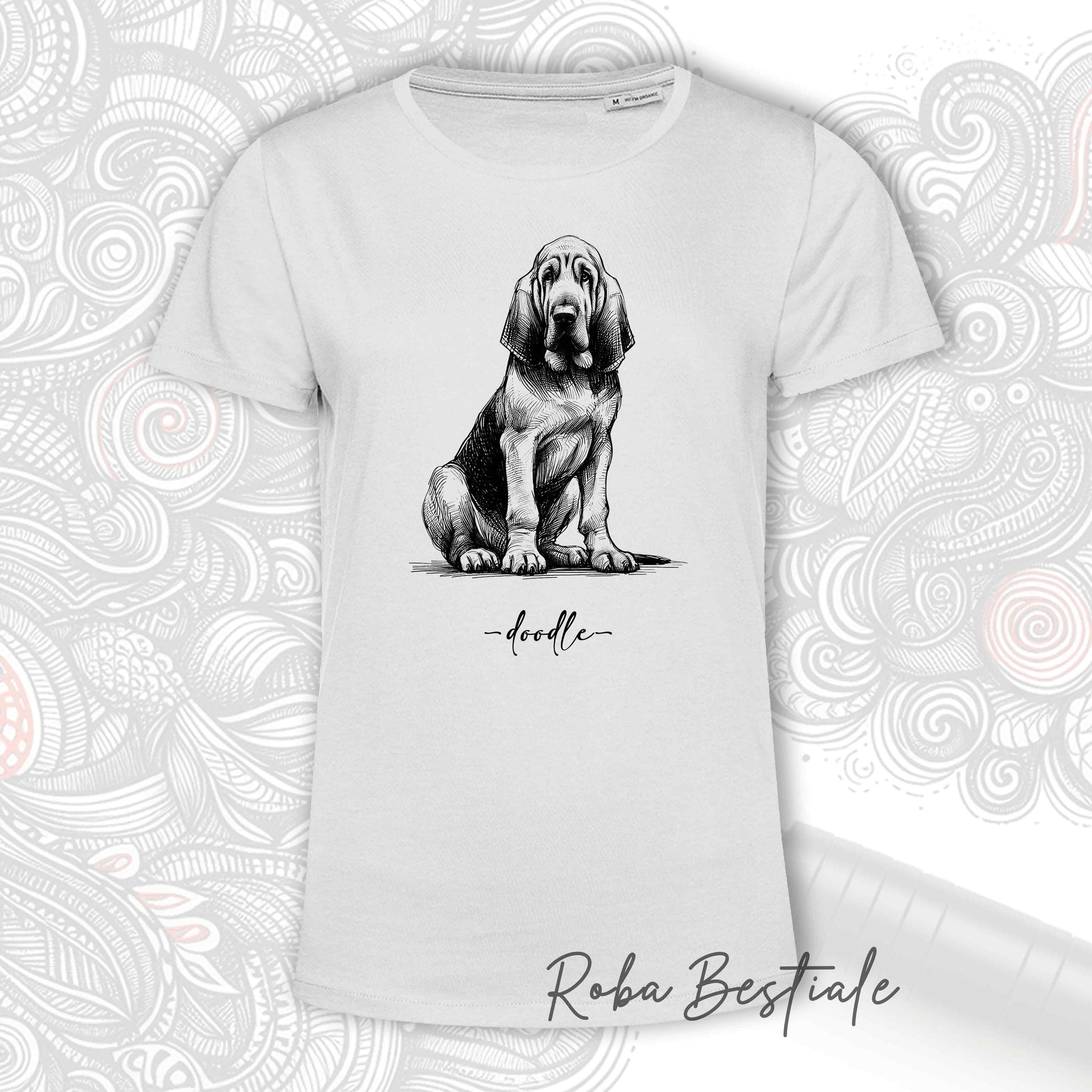T-Shirt DOODLE - BLOODHOUND - 100% Cotone, Bianca, Uomo o Donna - dalla XS alla 5XL