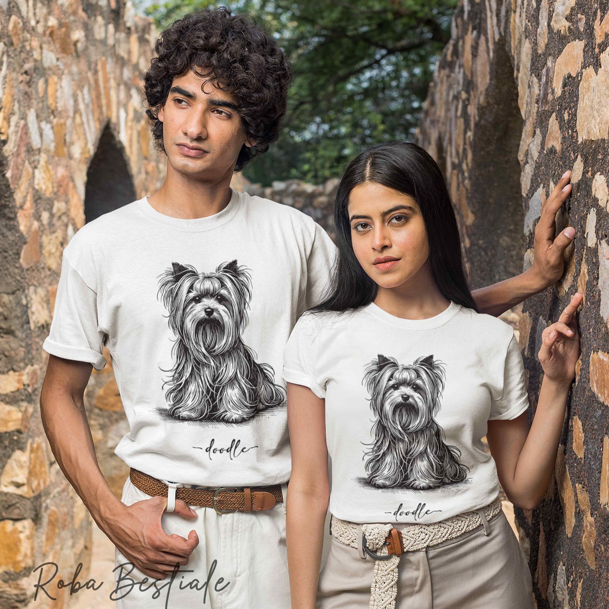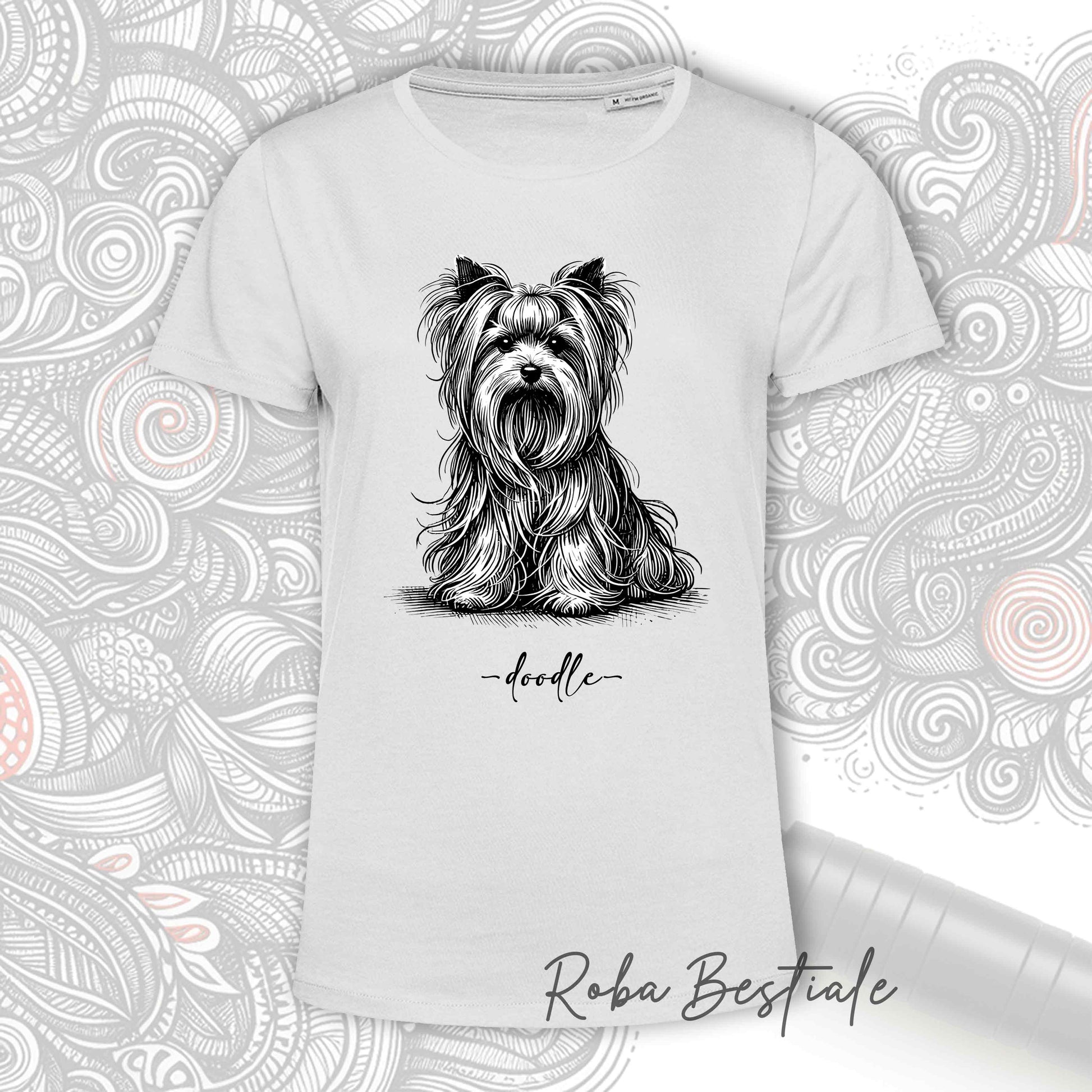 T-Shirt DOODLE Elegance - YORKSHIRE TERRIER - 100% Cotone, Bianca, Uomo o Donna - dalla XS alla 5XL
