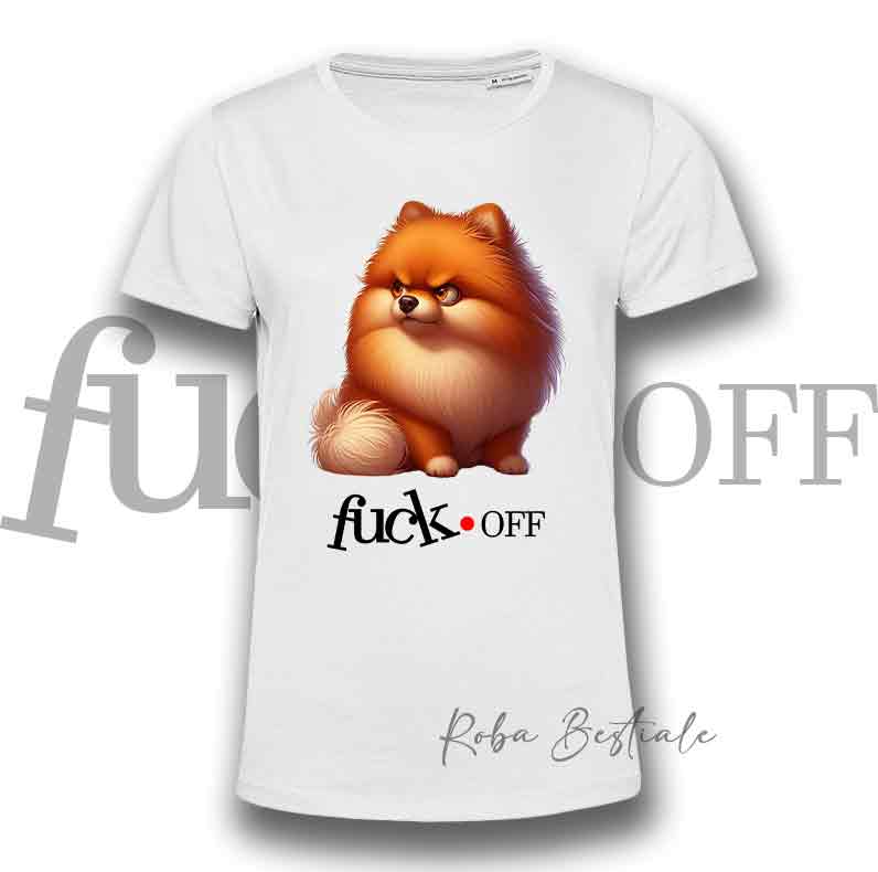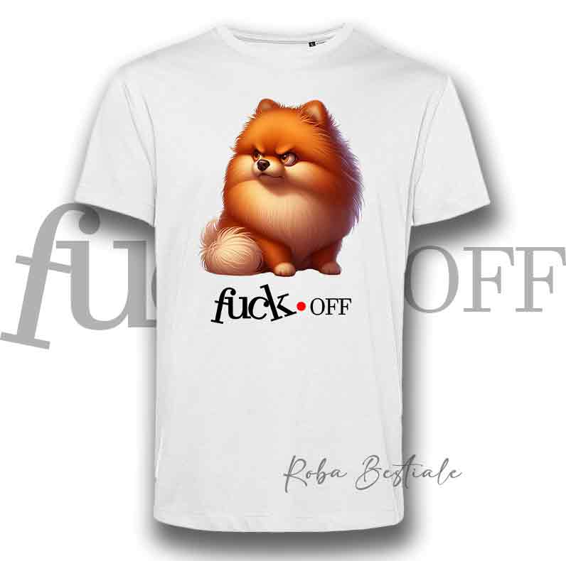T-Shirt F**K OFF - SPITZ TEDESCO NANO- POMERANIA Arancio - Bianca o Nera - Uomo o Donna - dalla XS alla 5XL
