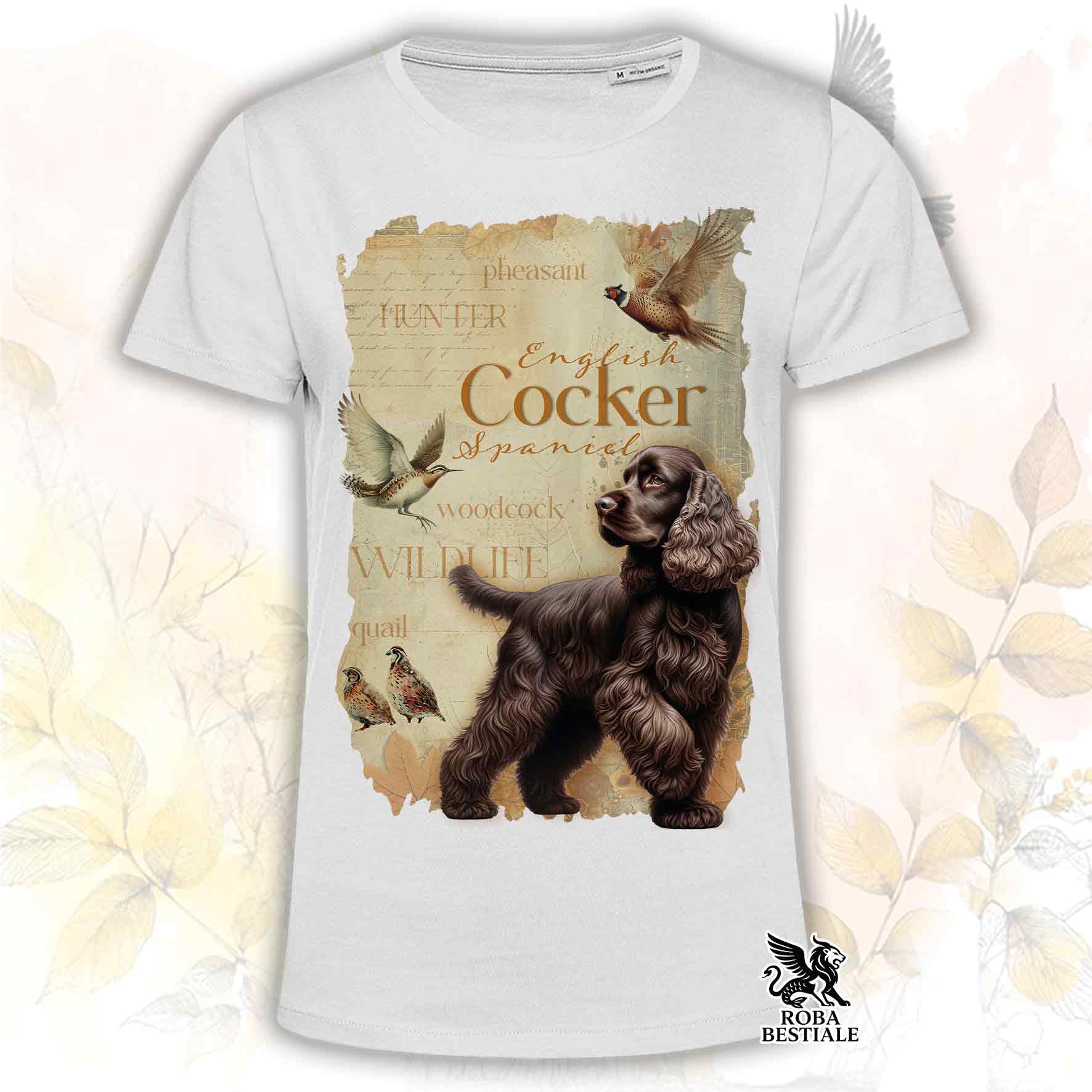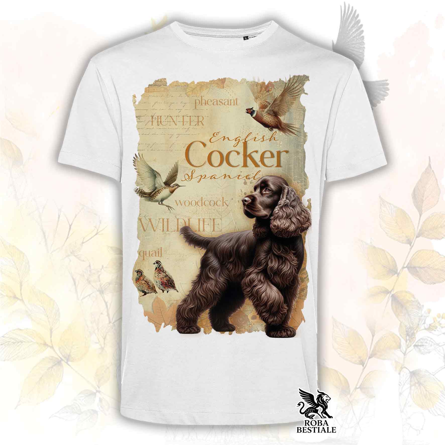 T-Shirt FIELD LEGACY - COCKER SPANIEL INGLESE Fegato - Bianca o Beige, da Uomo o da Donna - dalla XS alla 5XL