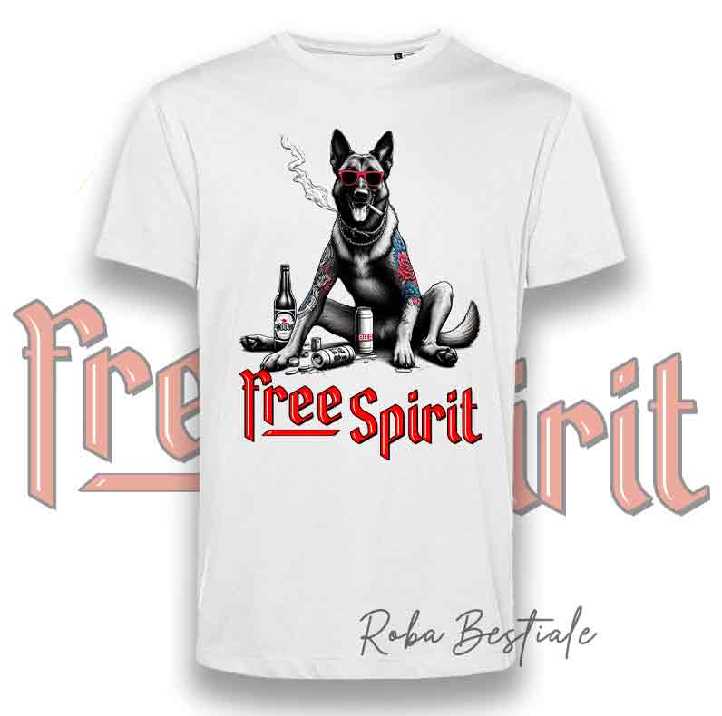 T-Shirt FREE SPIRIT - PASTORE BELGA MALINOIS - Uomo o Donna - dalla XS alla 5XL