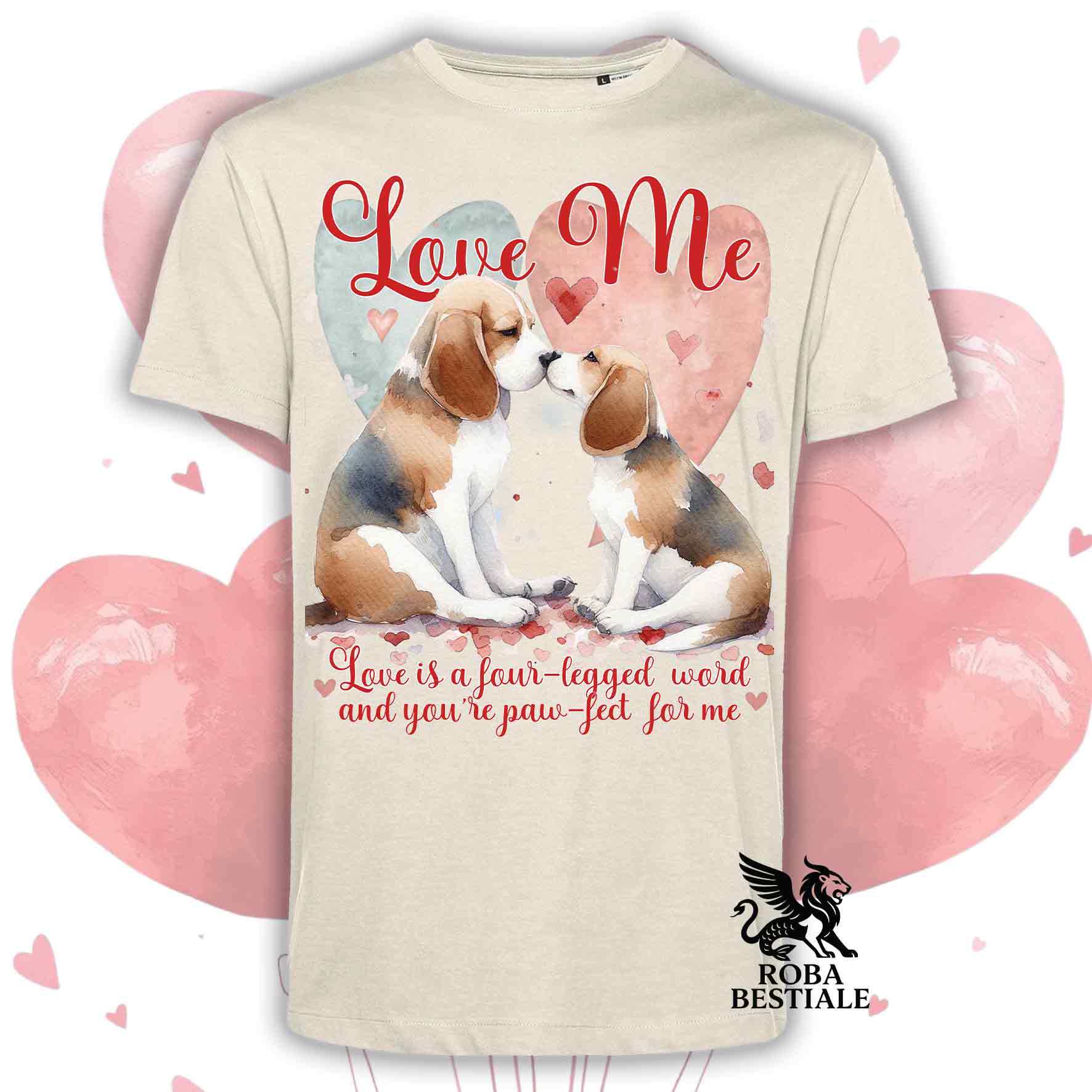 T-shirt LOVE ME - BEAGLE Tricolore Blue - Bianca o Beige, Uomo o Donna - dalla XS alla 5XL