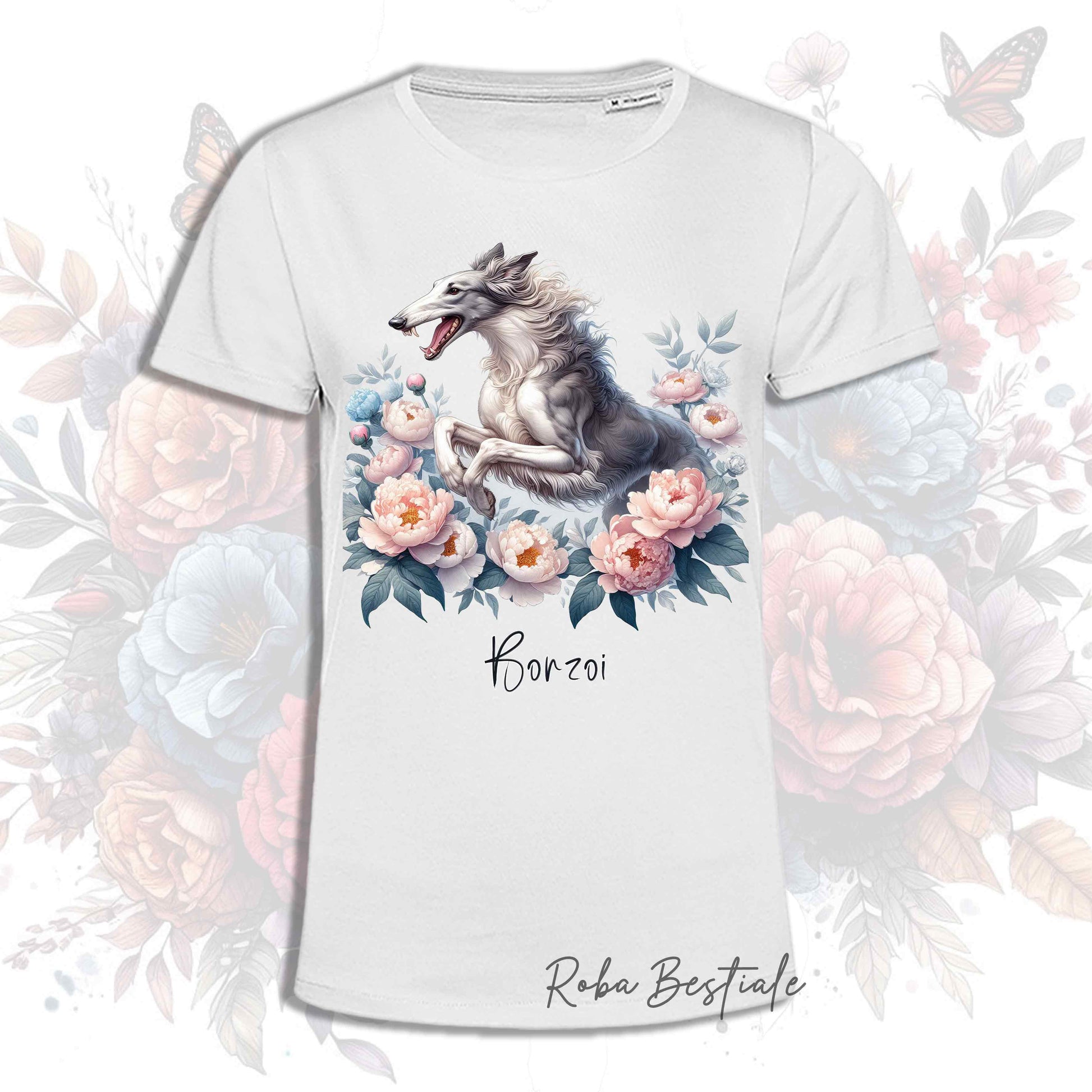 T-Shirt PEONY - BORZOI Bianco e Grigio - Bianca, Uomo o Donna - dalla XS alla 5XL