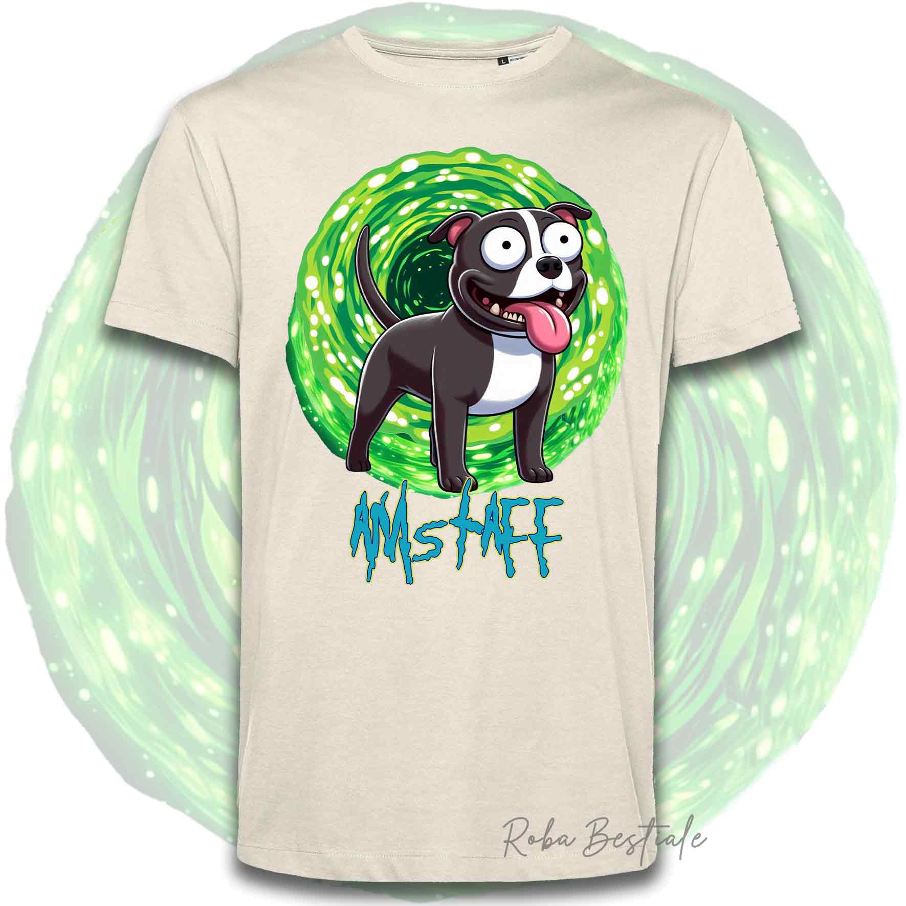 T-Shirt RICK & MORTY - AMERICAN STAFFORDSHIRE TERRIER Nero e Bianco - Bianca, Beige o Nera, Uomo o Donna - dalla XS alla 5XL