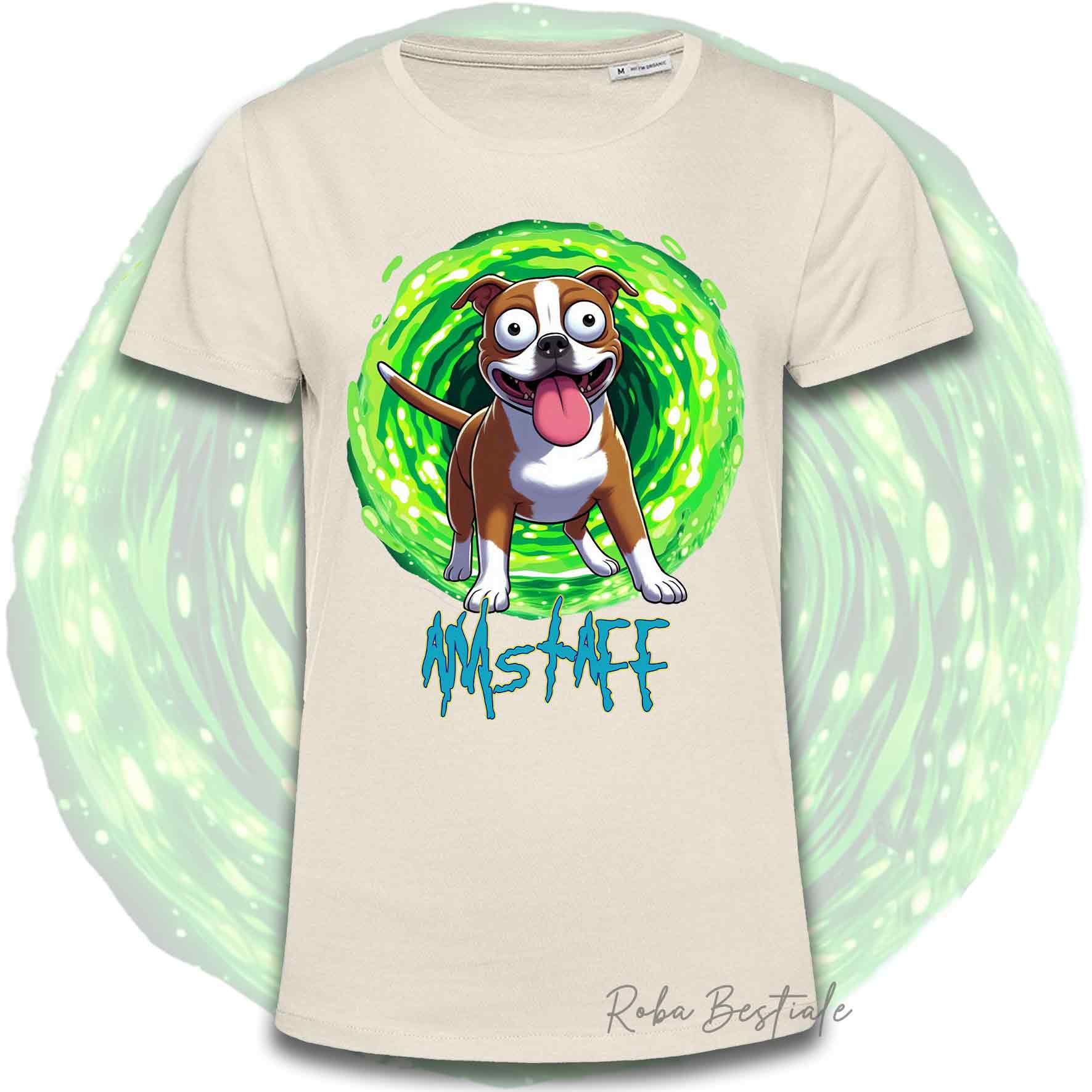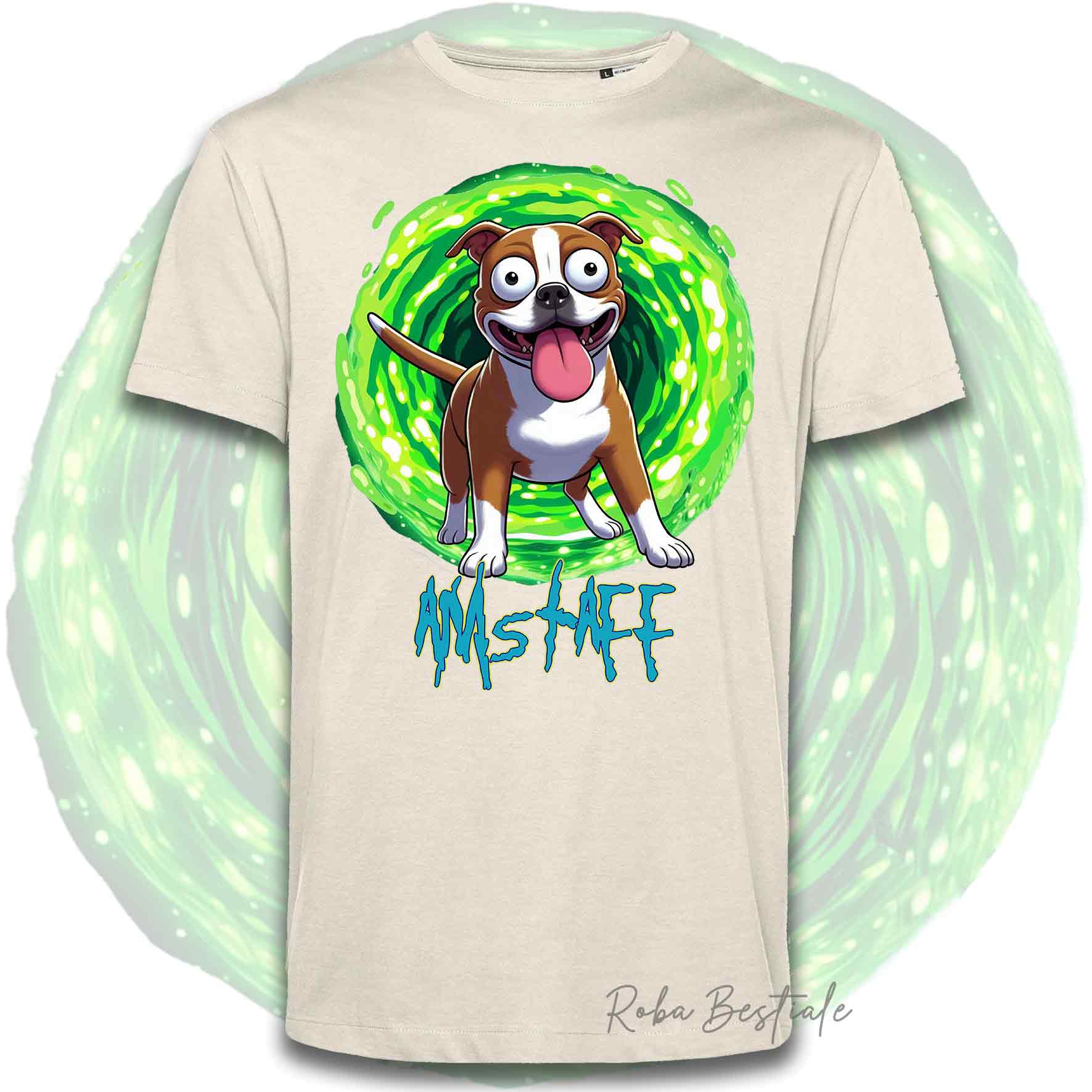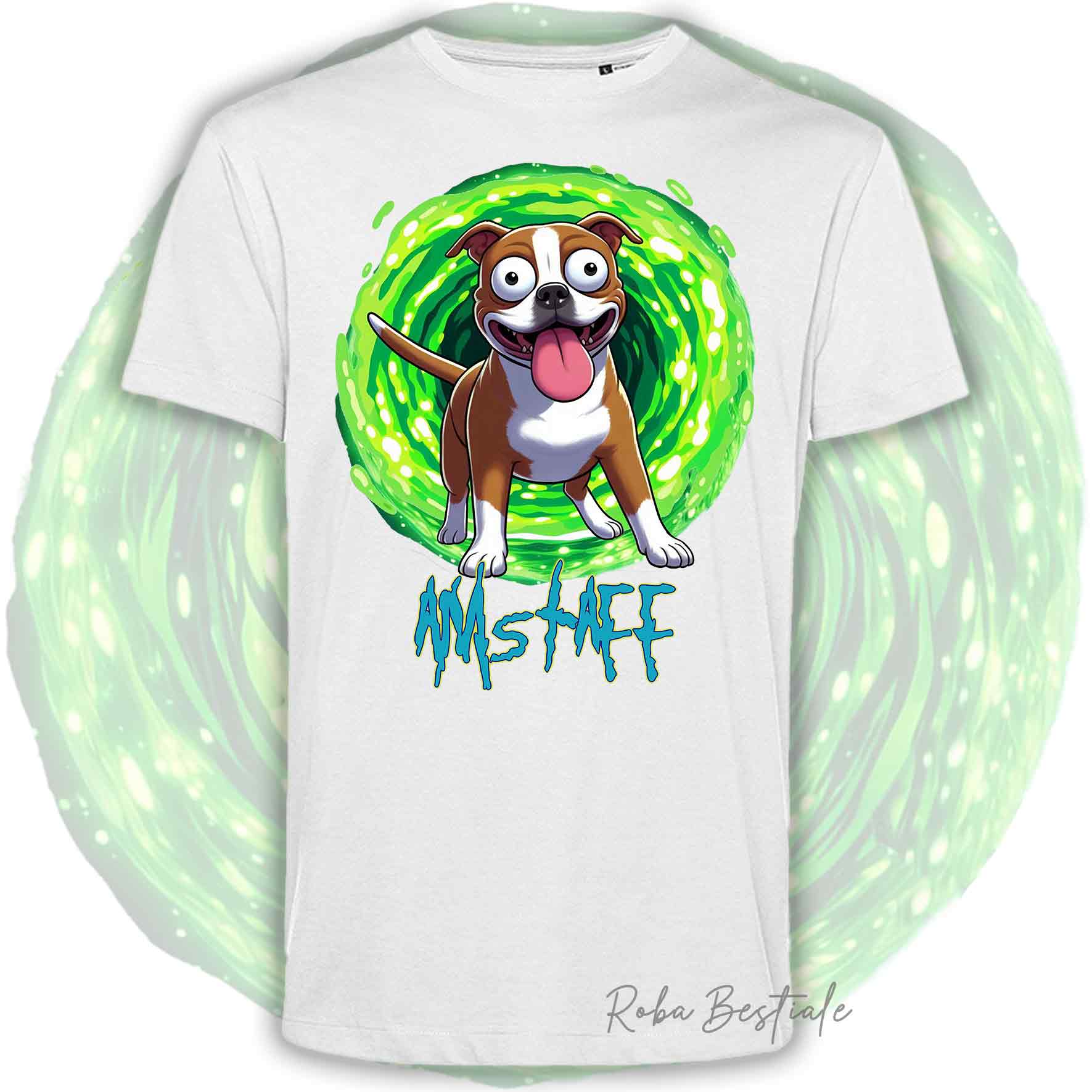 T-Shirt RICK & MORTY - AMERICAN STAFFORDSHIRE TERRIER Rosso e Bianco - Bianca, Beige o Nera, Uomo o Donna - dalla XS alla 5XL