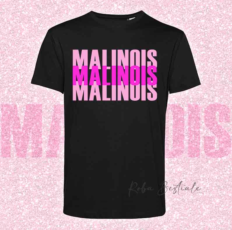 T-Shirt SOLO SCRITTE - PASTORE BELGA MALINOIS - Nera, scritta in Vinile in colore a scelta - Uomo o Donna - dalla XS alla 5XL