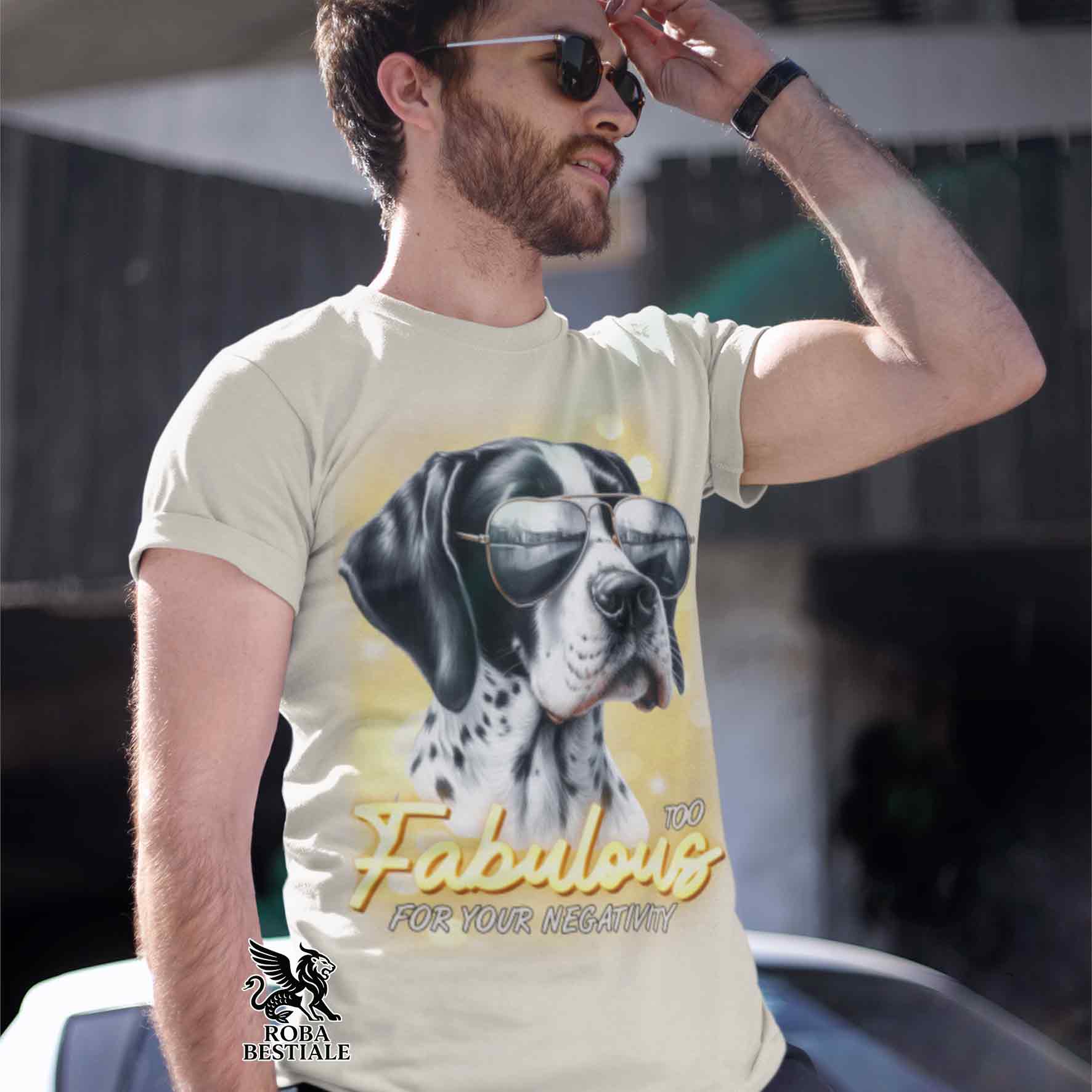 T-Shirt TOO FABULOUS - POINTER INGLESE Bianco e Nero - 100% Cotone, Bianca o Beige, Uomo o Donna - dalla XS alla 5XL