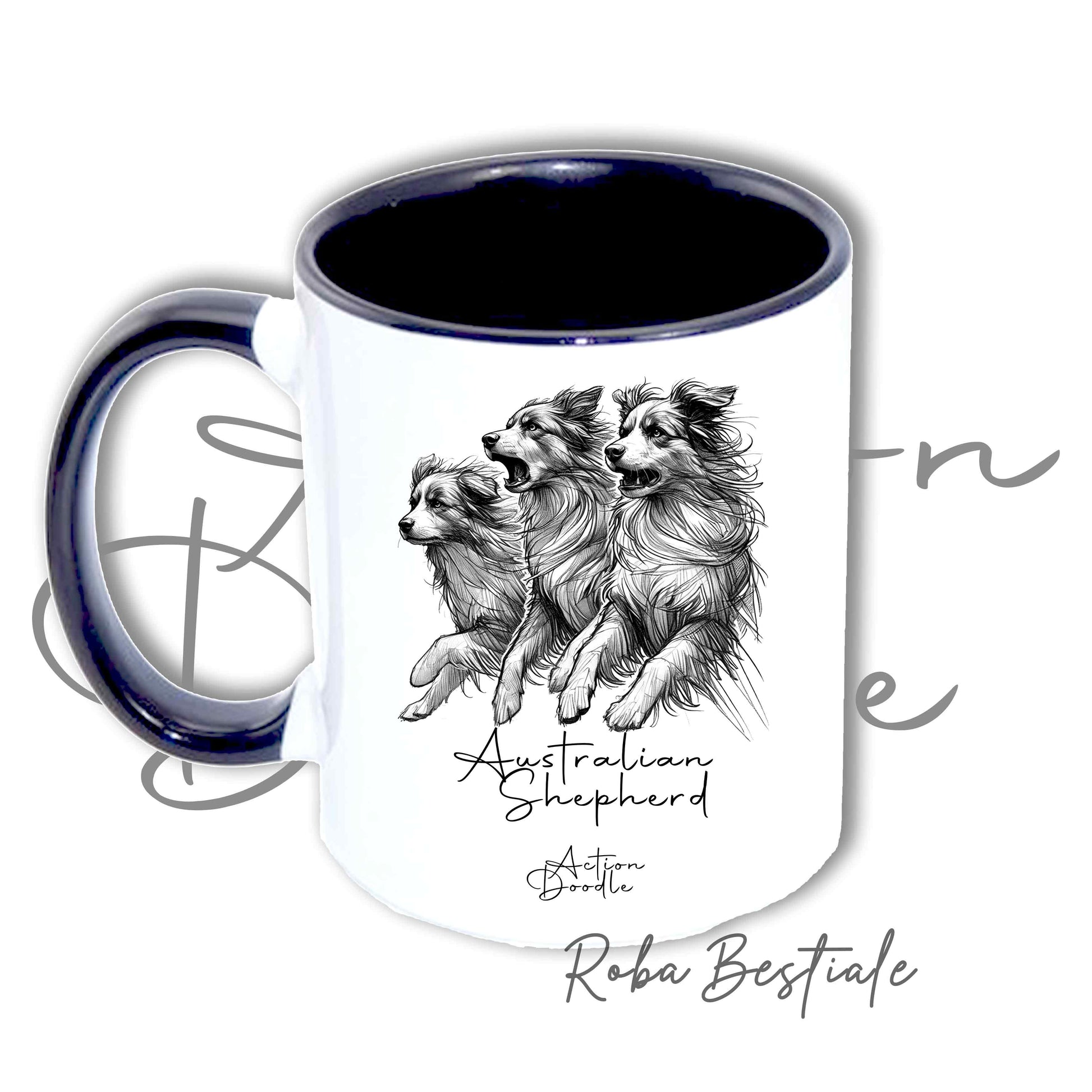 Tazza ACTION DOODLE - AUSTRALIAN SHEPHERD Blue Merle 1 - In Ceramica, con manico e interno colorati - 330 ml