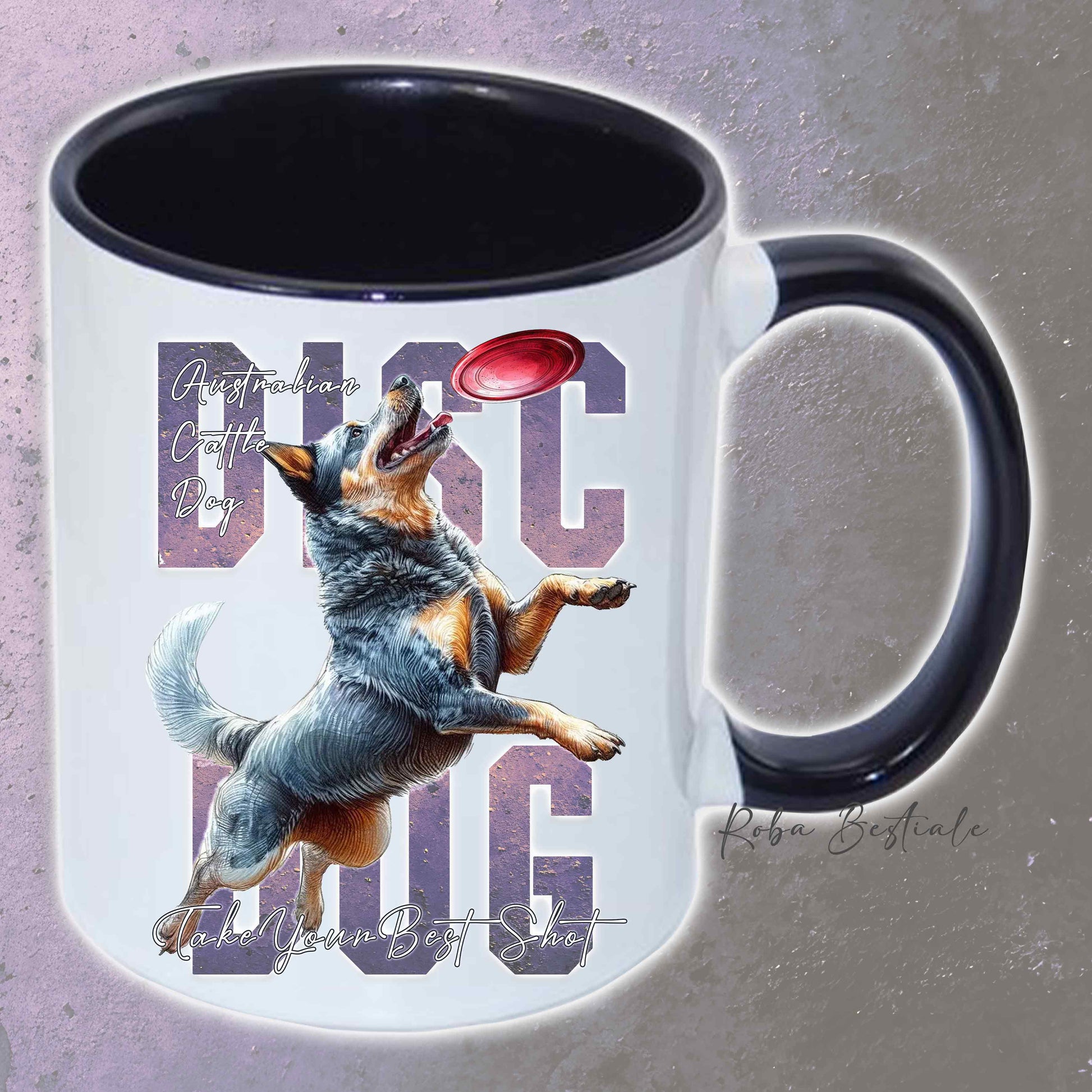 Tazza APTITUDE - DISC DOG - AUSTRALIAN CATTLE DOG Blue - In Ceramica, con manico e interno colorato - 330 ml