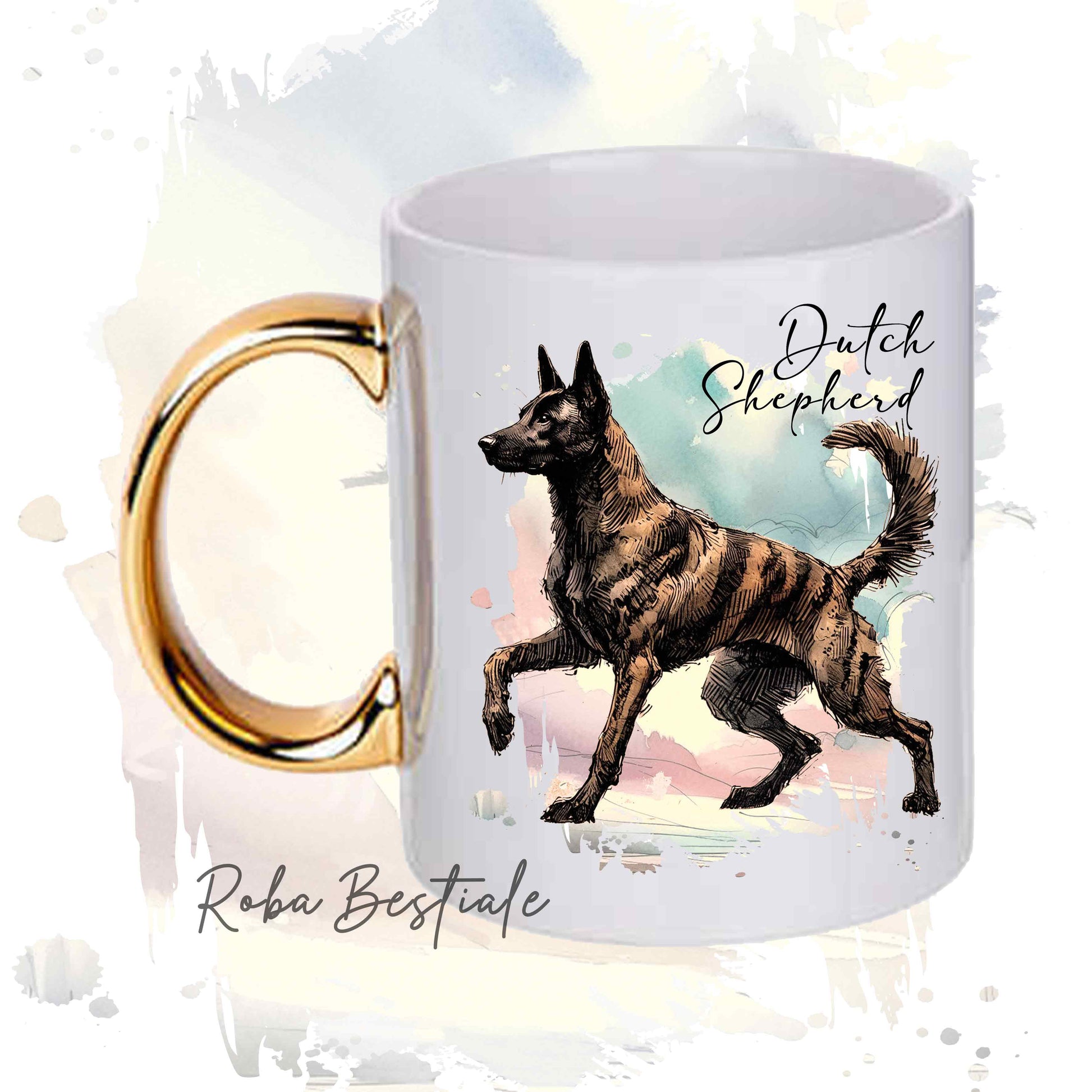 Tazza BEHAVIOR - PASTORE OLANDESE a Pelo Corto - Standard FCI - In Ceramica, con manico dorato - 330 ml