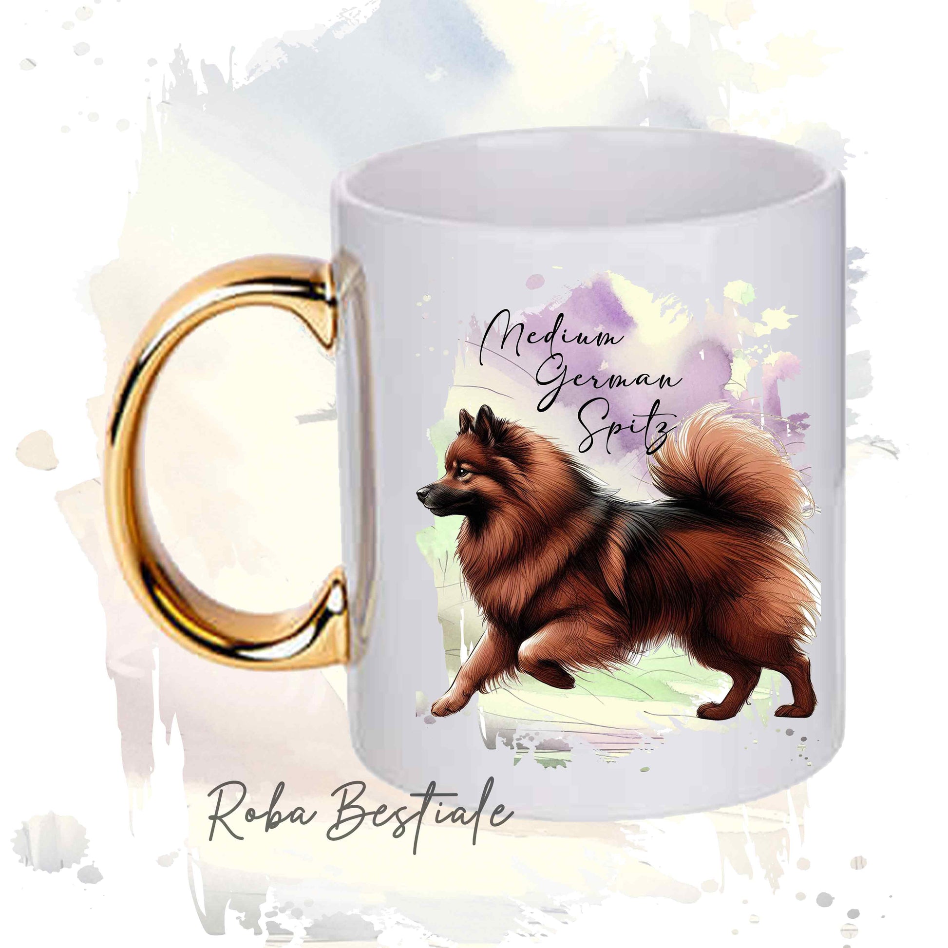 Tazza BEHAVIOR - SPITZ TEDESCO MEDIO Marrone - Standard FCI - In Ceramica, con manico dorato - 330 ml