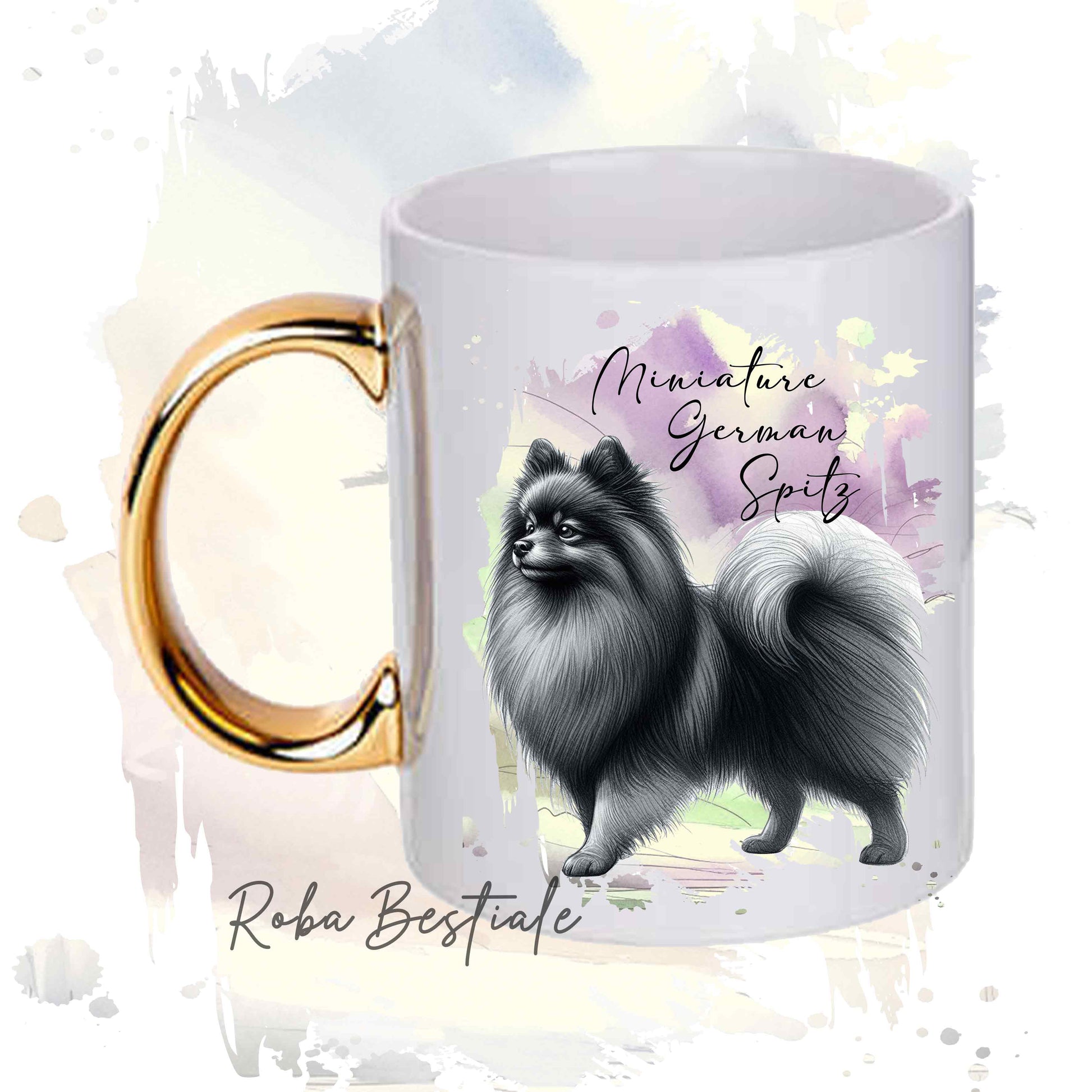 Tazza BEHAVIOR - SPITZ TEDESCO PICCOLO Grigio Sfumato - Standard FCI - In Ceramica, con manico dorato - 330 ml