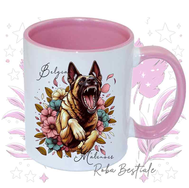 Tazza BLOSSOM BEAUTY - PASTORE BELGA MALINOIS - Manico e Interno Colorati - In Ceramica, 330 ml
