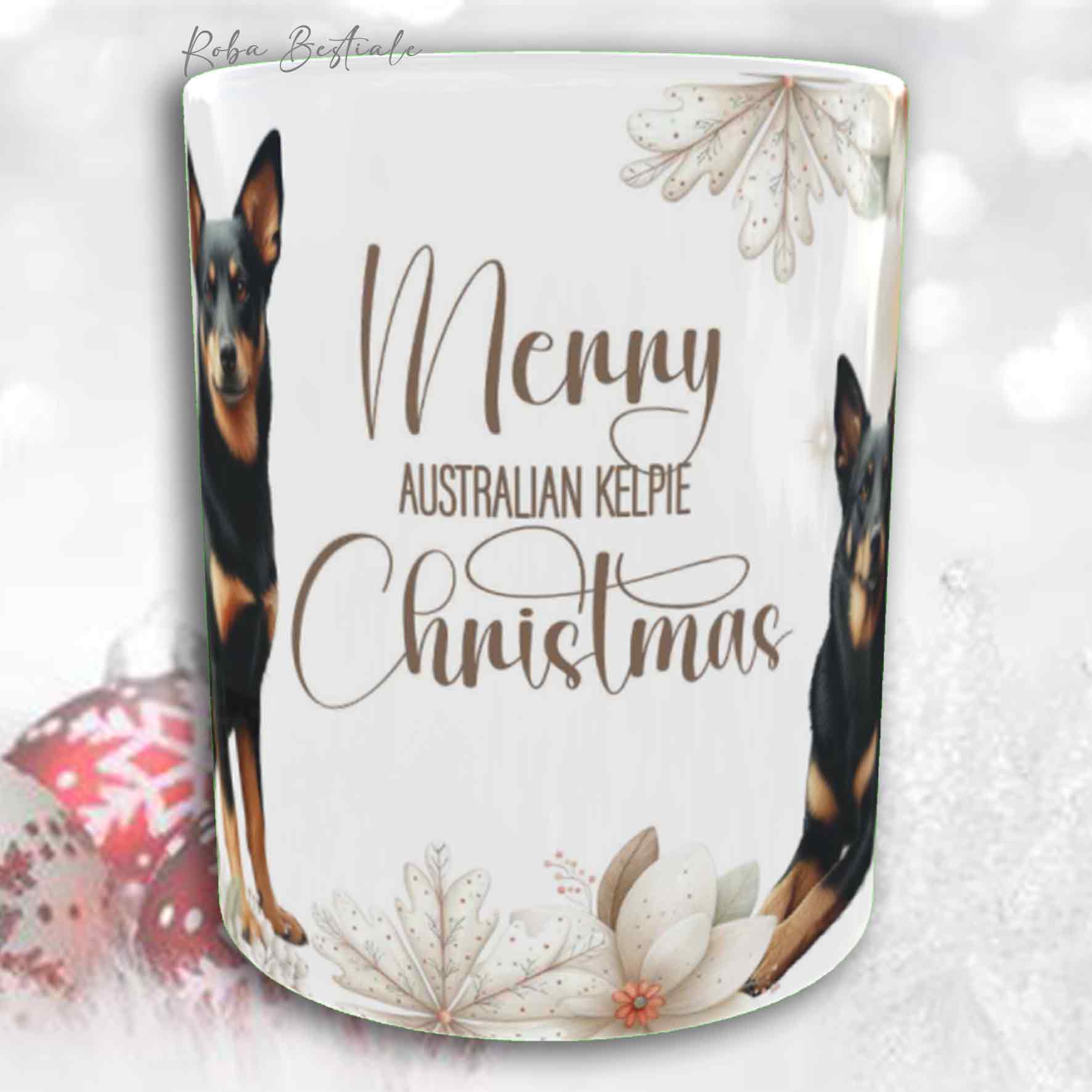 Tazza COZY WINTER - AUSTRALIAN KELPIE Nero Focato - In Ceramica, con manico color Oro - 330 ml