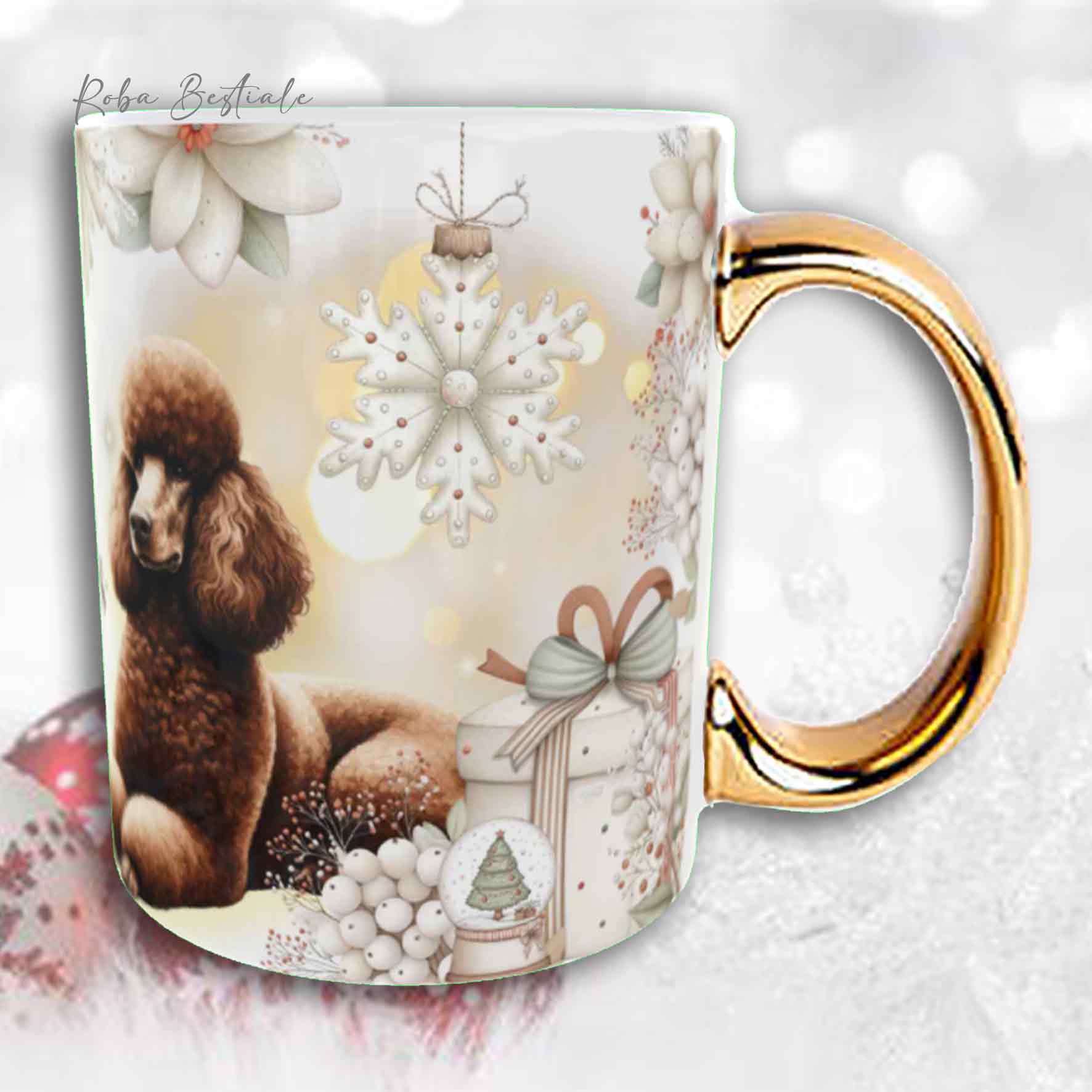 Tazza COZY WINTER - BARBONE Grande Mole Marrone - In Ceramica, con manico color Oro - 330 ml