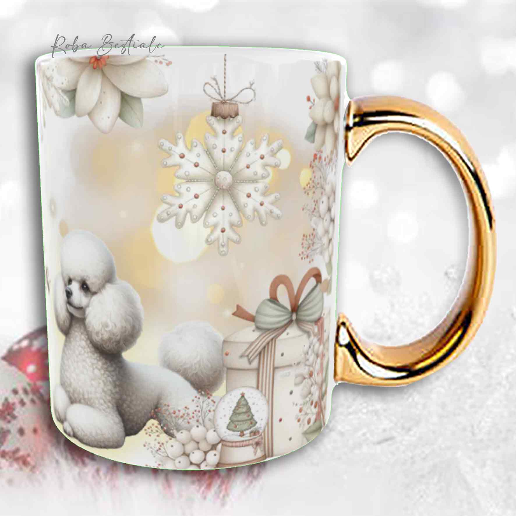 Tazza COZY WINTER - BARBONE Toy Bianco - In Ceramica, con manico color Oro - 330 ml